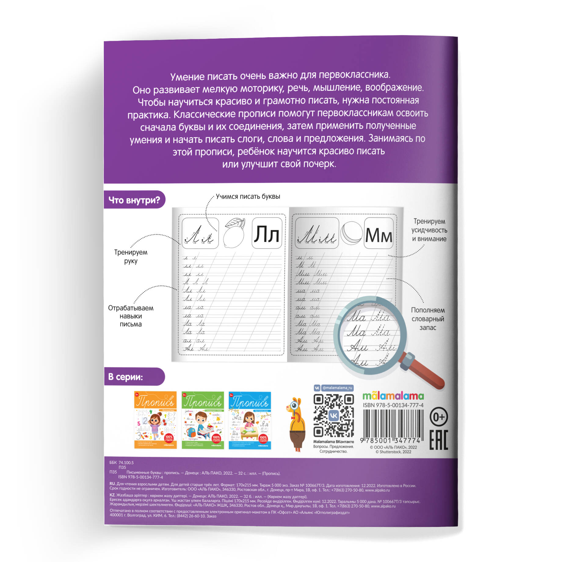 Умение писать очень важно для первоклассника. Оно развивает мелкую моторику, речь, мышление, воображение. Чтобы научиться красиво и грамотно писать, нужна постоянная практика. Классическая пропись "Письменные буквы" поможет первоклассникам освоить сначала буквы и их соединения, затем применить полученные умения и начать писать слоги, слова и предложения. Занимаясь по этой прописи, ребёнок научится красиво писать и улучшит свой почерк.| Издательство | АЛЬ ПАКО ООО |