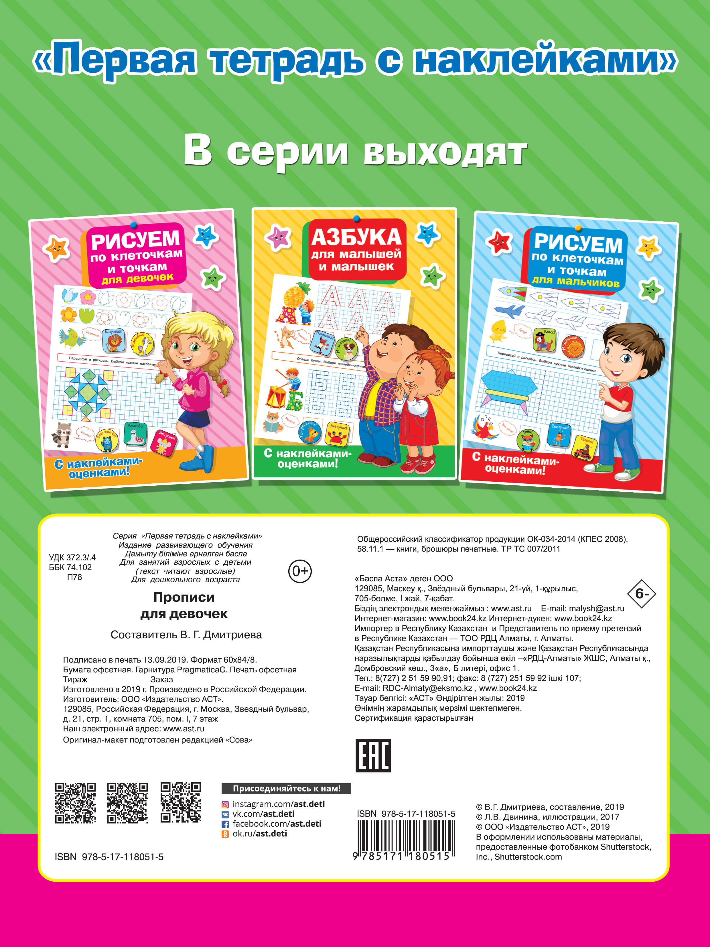 О чем эта книга Прекрасно иллюстрированные развивающие прописи большого формата с поощрительными наклейками - отличный подарок для будущих первоклассников. Кому эта книга будет интересна Издание будет интересно заботливым родителям и любознательным дошколятам для знакомства с буквами и цифрами. Каковы особенности этой книги • Развивающие задания, предложенные в этой книге, в игровой форме помогут быстро выучить буквы алфавита и цифры от 1 до 10. • В пособие вошли обучающие задания на развитие речи, внимания, памяти, мышления, и мелкой моторики. • Первые успехи малыша можно будет отметить красочными поощрительными наклейками. • Занимаясь с малышом 10-15 минут в день, вы увидите отличные результаты. Пусть дошколята играют, пишут, узнают новое и оценивают свои успехи!