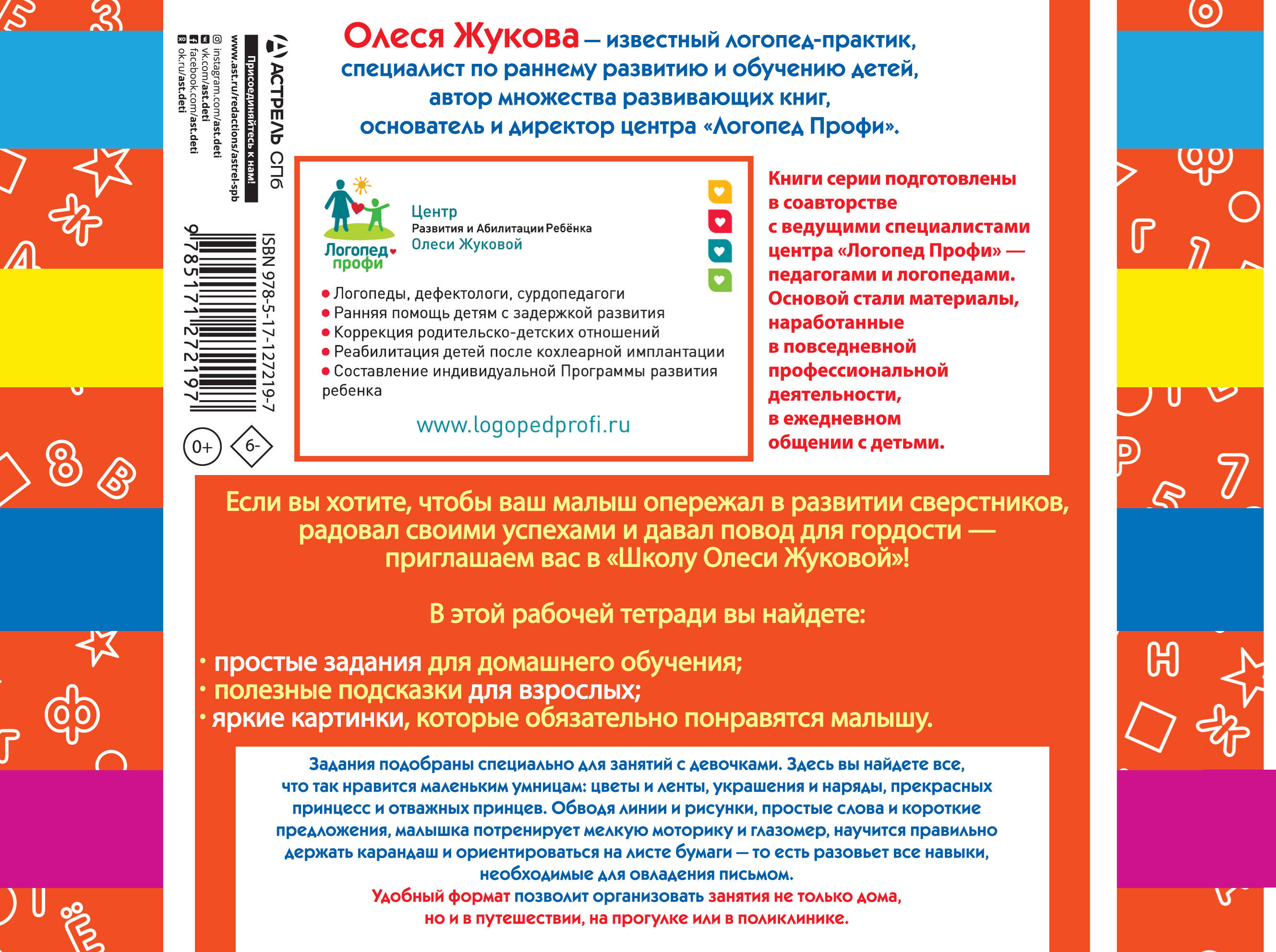 Эта книга создана специально для занятий с девочками. В ней вы найдете все, что так нравится маленьким умницам: цветы и ленты, украшения и наряды, прекрасных принцесс и отважных принцев. Обводя линии и рисунки, простые слова и короткие предложения, малышка потренирует мелкую моторику и глазомер, научится правильно держать карандаш и ориентироваться на листе бумаги - то есть разовьет все навыки, необходимые для овладения письмом. Для детей до пяти лет.