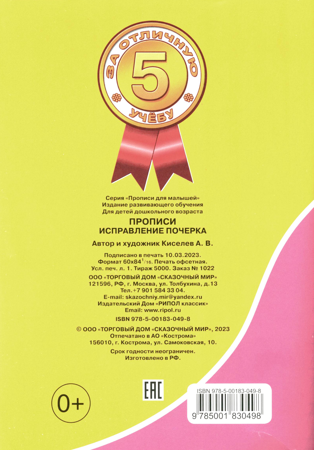 Развивающее пособие из серии Прописи для малышей предназначено для детей дошкольного возраста.| Издательство | ТД Сказочный мир |