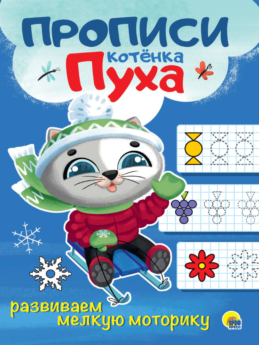 Новые прописи помогут малышу подготовить руку к письму, развить внимание и аккуратность, а иллюстрации с милым котёнком Пухом сделают процесс рисования интересным и нескучным!