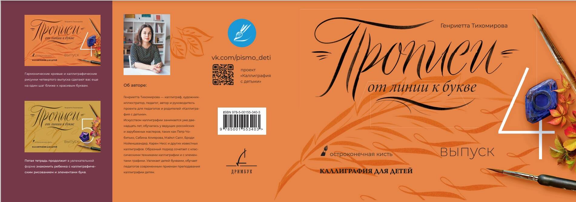 Путь к красивым буквам начинается с красивых линий! Прописи для кисти помогут детям сделать первые шаги в искусстве каллиграфии и совершить открытие, что кистью можно не только рисовать, но и писать. Пособие поможет педагогам разнообразить занятия письмом для детей - прописи можно использовать на уроках чистописания, в структуре логопедических занятий (коррекция почерка), на занятиях по подготовке к школе. Каллиграфия может стать отличным хобби - ваш ребенок начнет писать с удовольствием. Письмо остроконечной кистью помогает ребенку сформировать правильный захват, подготовить руку к письму шариковой ручкой и остроконечным пером, развивает терпение и аккуратность. Взрослым, начинающим знакомство с каллиграфией, прописи помогут освоить азы техники письма остроконечной кистью. Четвертый выпуск в серии направлен на знакомство базовыми понятиями: ритм, нажим, строка. Не просто линии, а природные мотивы (листья, птицы, колоски) и гармонические дорожки собраны для вас под обложкой четвертого выпуска. Пособие предназначено для детей от 6 до 14 лет и рассчитано на совместную работу взрослого и ребенка. Используйте выпуск 3 и выпуск 4 одновременно| Издательство | Яуза-каталог ООО |