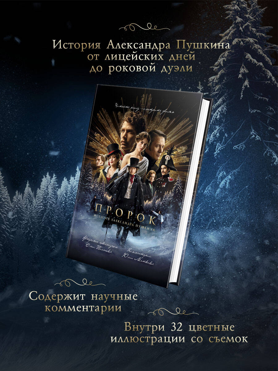 Официальная новеллизация одного из самых ожидаемых кинопроектов зимы 2025 года - «Пророк. История Александра Пушкина» от команды «Централ Партнершип». История Александра Пушкина от лицейских дней до роковой дуэли, рассказанная доступным языком. Узнайте о нем как о Человеке, а не как о бронзовом памятнике. Пушкин молод, дерзок и любим публикой: он звезда любого бала, поклонники носят его на руках, а девушки мечтают о его внимании. Но ни высокие покровители, ни верные друзья, ни известность не могут отвести от него злой рок - ссылки, дуэли, безденежье. Пока однажды он не встречает ту самую, единственную, кто осветит его жизнь и станет его судьбой. Судьбой гения, которого нам только предстоит по-настоящему узнать. Книга содержит научные комментарии и 32 цветные иллюстрации со съемок. Ольга Тиханова - автор художественной новеллизации, российский писатель, сценарист, преподаватель и театровед (закончила ГИТИС в 2003-м, театроведческий факультет), работает на телевидении и издается в «ЭКСМО» (дебютный роман «Проект "Замуж"»). Научные комментарии подготовила Юлия Матвеева, кандидат филологических наук, ученый секретарь ГМИРЛИ имени В.И. Даля, литературовед. Секретарь Ассоциации литературных музеев Союза музеев России, постоянный участник конференции «Болдинские чтения» и Пушкинской конференции филологического факультета МГУ имени М.В. Ломоносова, автор статей и методических разработок, в том числе для студентов. Опыт музейной работы - 20 лет.| Издательство | ООО "Издательство "Эксмо" |