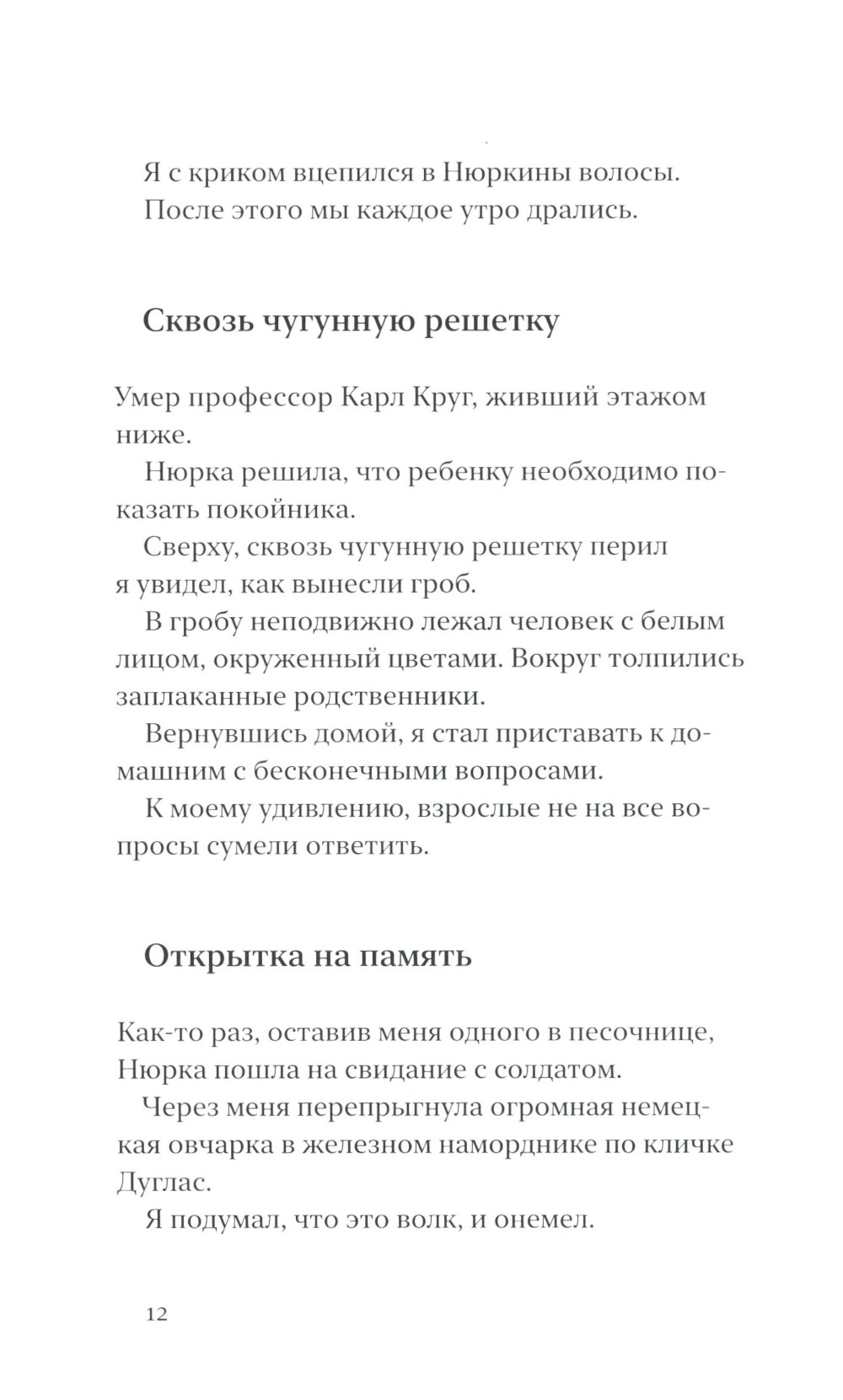 Его тексты отличает остроумие и легкость, а также внимание к гротескным деталям повседневной жизни на двух континентах, маленьким и большим драмам человека XX столетия. В них отражается как личная биография, так и судьба целого поколения: от взросления в еврейской семье в послевоенном СССР, первых столкновений с антисемитизмом и абсурдностью позднесоветского быта до мира неподцензурного искусства и жизни в эмиграции. Брускин использует остраненный, детский взгляд на окружающий мир, делающий короткие документальные зарисовки такими же выразительными, как зрительные образы его художественных работ. Впервые под одной обложкой собраны произведения, поставившие Брускина в ряд самых значимых писателей своего поколения, а визуальные материалы из личного архива автора открывают для читателя еще одно измерение этих текстов, помогающее ощутить в них дыхание истории.