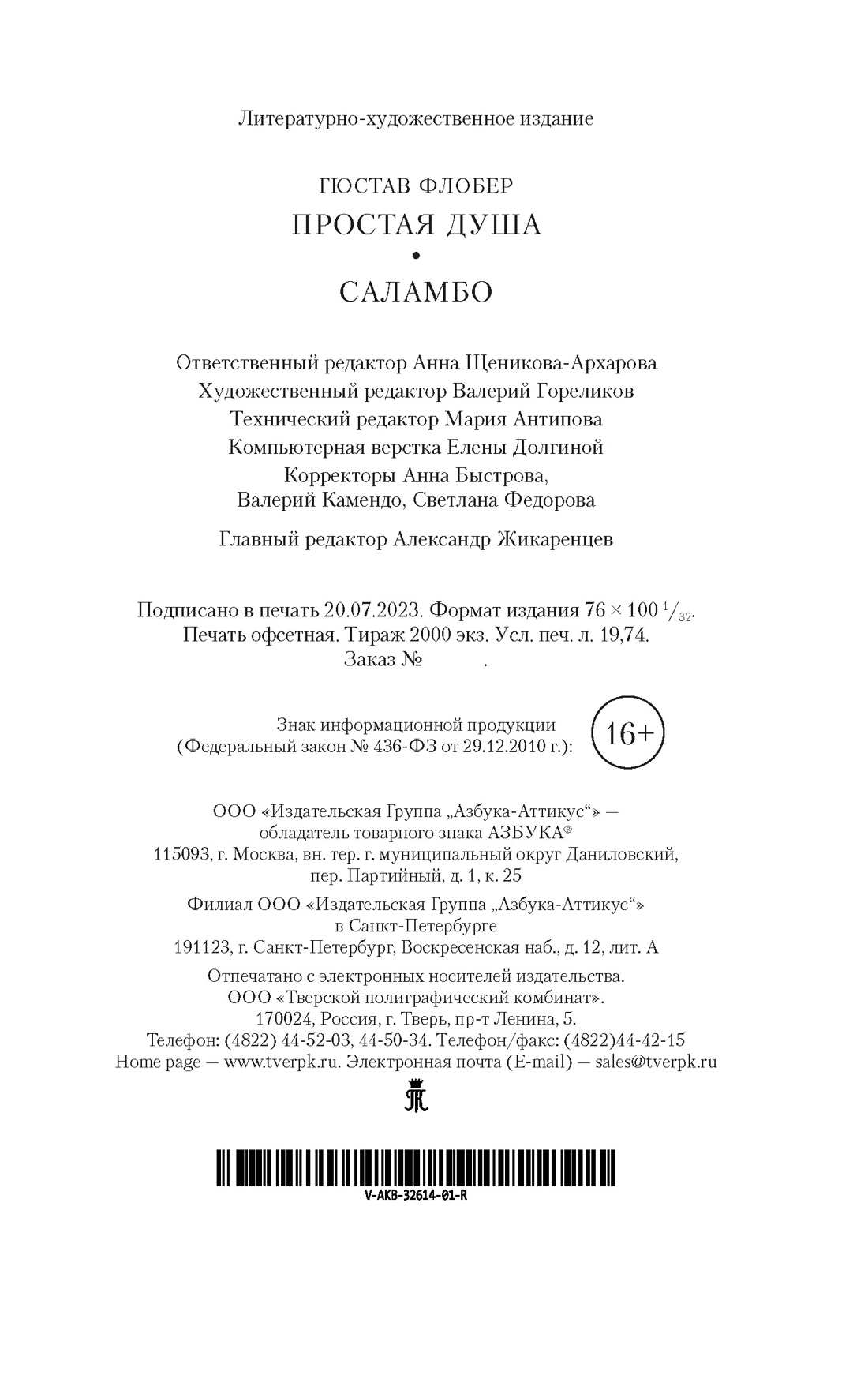 Аннотация: Простая душа. Саламбо