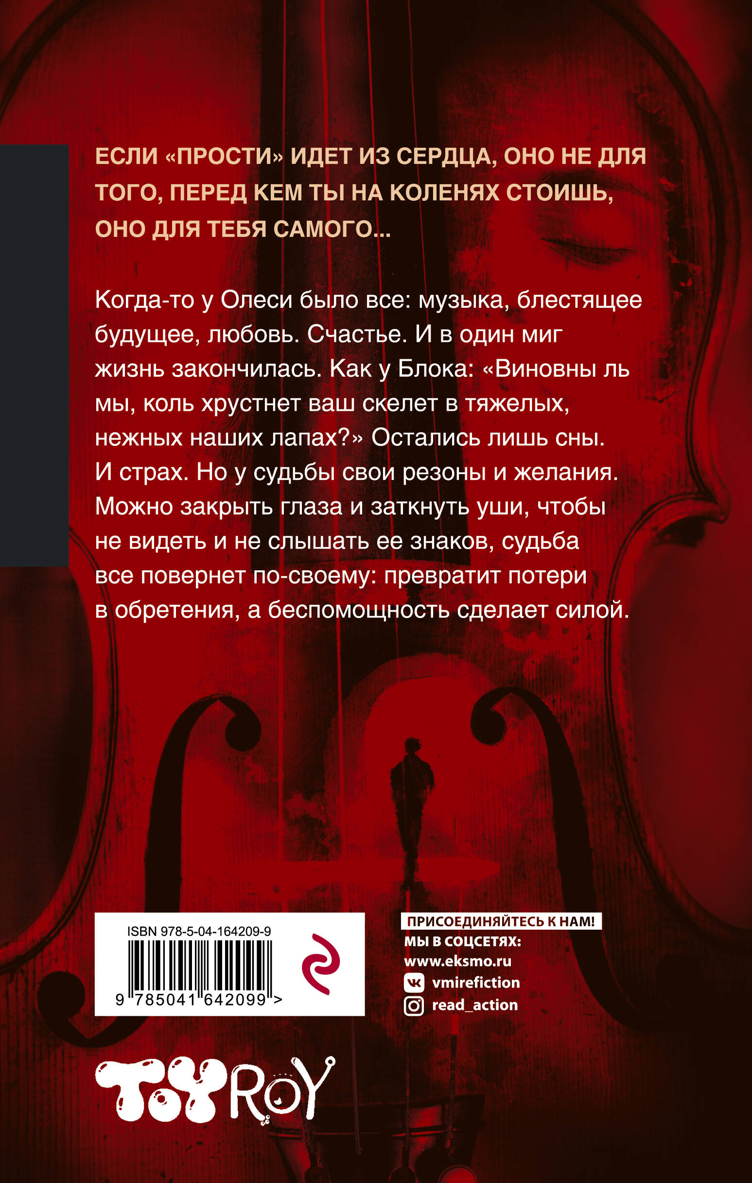 Новинка одного из самых популярных российских авторов - Олега Роя. Когда-то у Олеси было все: музыка, блестящее будущее, любовь. Но в один миг жизнь закончилась, и остался лишь страх. Привычный мир Саши разрушился после того, как его дед попал в больницу. Теперь весь смысл его жизни сузился до одной цели - сделать все, чтобы любимый дед поправился, а значит, во что бы то ни стало разыскать неведомую Тосю, почему-то очень важную для деда женщину из прошлого. Судьба столкнет этих героев, тесно переплетет их пути и все повернет по-своему: превратит потери в обретения, а беспомощность сделает силой. Давая ответы на загадки прошлого и избавляя героев от их страхов, Рой изящно вплетает в повествование размышления на многие болезненные темы: предательство, вседозволенность и бесправие, домашнее насилие, выученная беспомощность жертв и безнаказанность тиранов. Нетривиальные повороты сюжета, глубоко проработанные персонажи и живой, образный язык - отличительные черты прозы Роя, которой зачитываются люди всех поколений. «Прости» - его типичный роман, оставляющий долгое послевкусие.| Издательство | Эксмо |