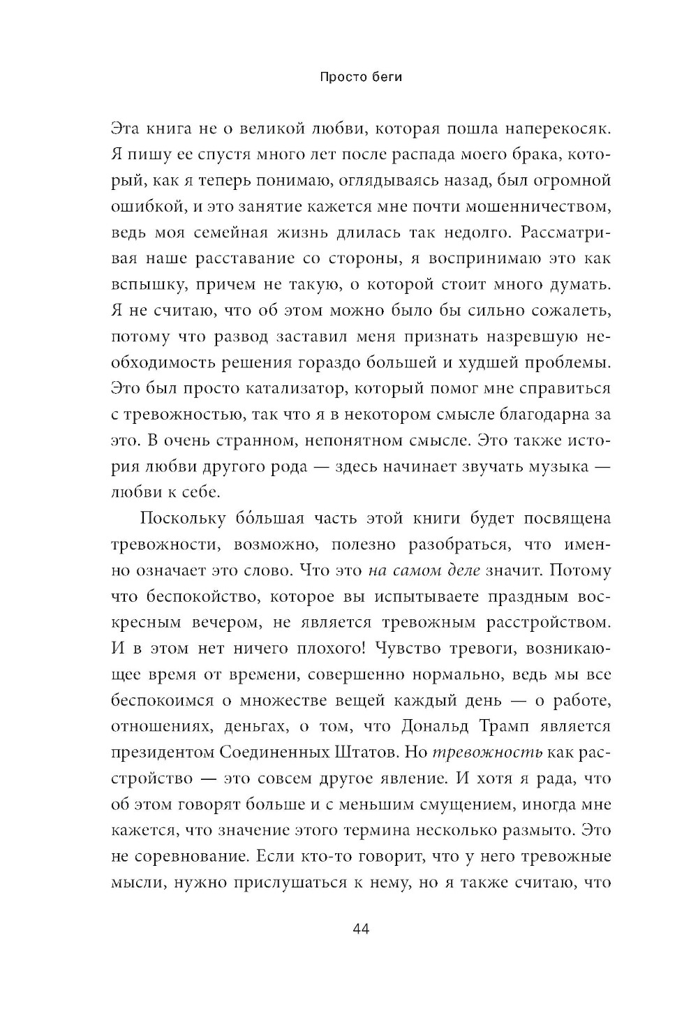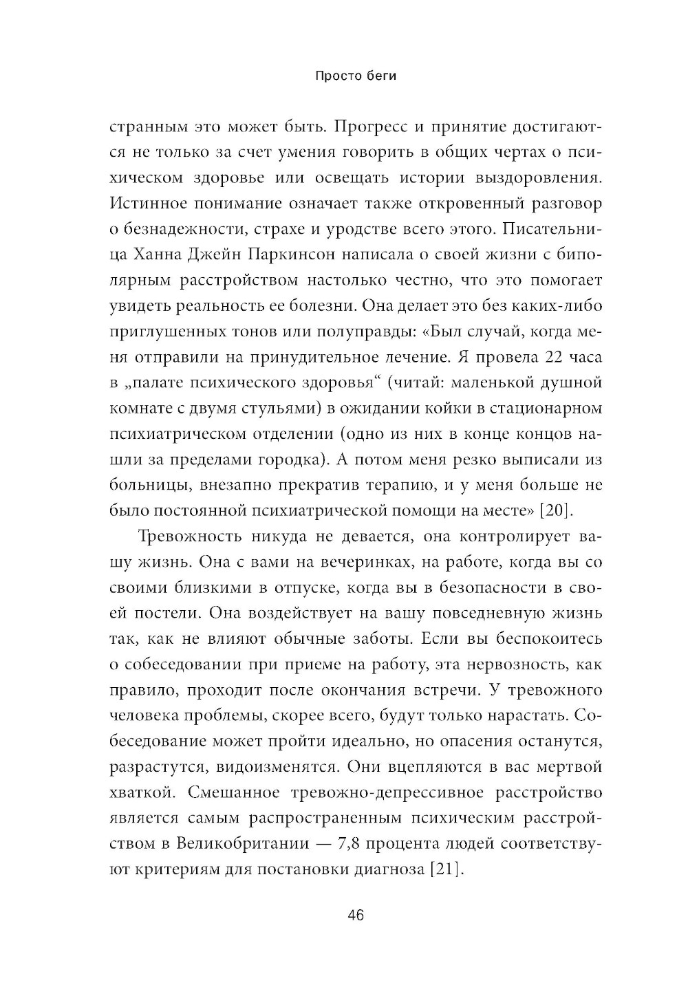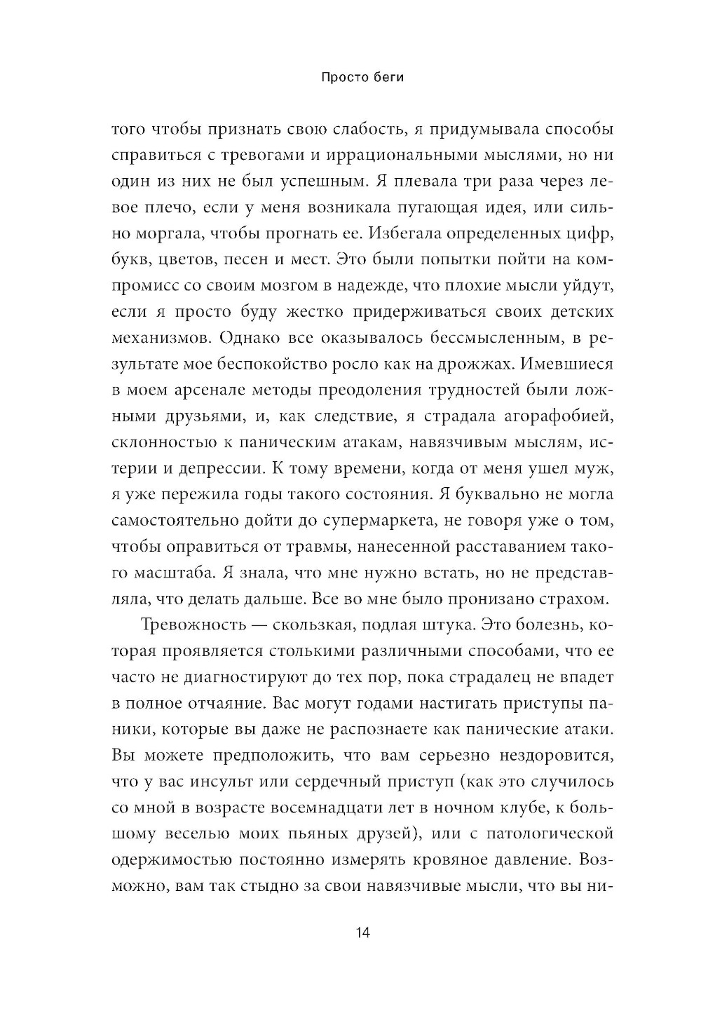 Разведенная и борющаяся с глубоко укоренившимися психологическими проблемами Белла Маки подошла к концу своего третьего десятка в слезах. Она едва могла найти в себе силы встать с дивана, не говоря уже о том, чтобы снова собрать свою жизнь по кусочкам воедино. Пока однажды не сделала то, чего сама от себя не ожидала, - надела кроссовки и отправилась на пробежку. Первая попытка была не слишком продолжительной. Но, к удивлению Беллы, на следующий день она снова пошла бегать. И на следующий день тоже. Она начала ставить перед собой достижимые цели - пробежать 5 километров менее чем за 30 минут, всю неделю ходить на работу пешком, сделать 10 отжиманий подряд. Не успела она опомниться, как впервые за много лет у нее поднялось настроение. В своей искренней книге Белла с блестящим чувством юмора описывает, как использовала бег для борьбы с тревогой и депрессией, не жертвуя, однако, главными увлечениями: вином, сигаретами и мороженым. Эта забавная, трогательная и мотивирующая история заставит вас сказать своим проблемам: «Просто бегите», - и перенаправить жизнь в нужное русло - сколь бы маленькими ни казались ваши первые шаги.| Издательство | Попурри |