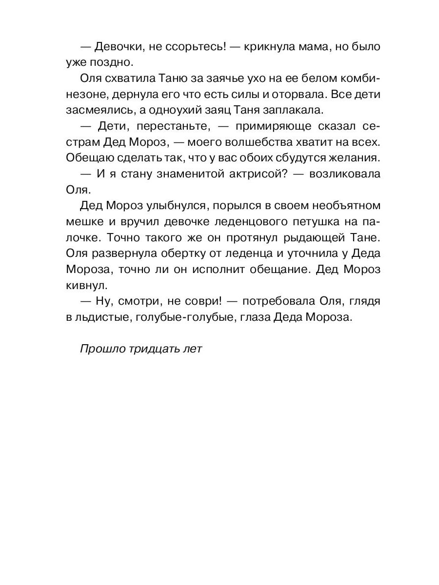 Однажды маленькая Оля сказала Деду Морозу, что хочет вырасти красавицей и стать известной актрисой. Ее желание исполнилось, однако почему-то не принесло Ольге счастья. В то же время Олина сестра-близняшка Татьяна, обычная преподавательница французского, тоже несчастлива в своей обыденной серой, как ей кажется, жизни. И Ольга внезапно решает обменяться с Татьяной судьбами ровно на месяц - как раз до Нового года. Сказано - сделано! Тут уж сюрпризы посыпались на сестер, как из мешка Деда Мороза - подарки. Накануне Нового года судьбы самых разных людей: известного телеведущего из Москвы, полярника с Крайнего Севера, учительницы с Урала, продавца лимузинов из Америки и попавшей в беду девочки из Екатеринбурга - в результате невероятных жизненных обстоятельств и благодаря воле провидения соединятся. Общее у этих столь разных героев только одно - надежда на Новый год и несокрушимая вера в то, что у русских в Новый год чудеса сбываются!| Издательство | Т8 RUGRAM |