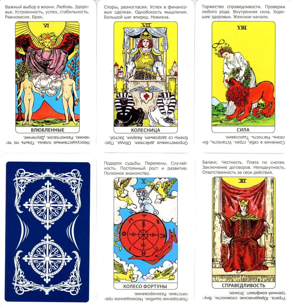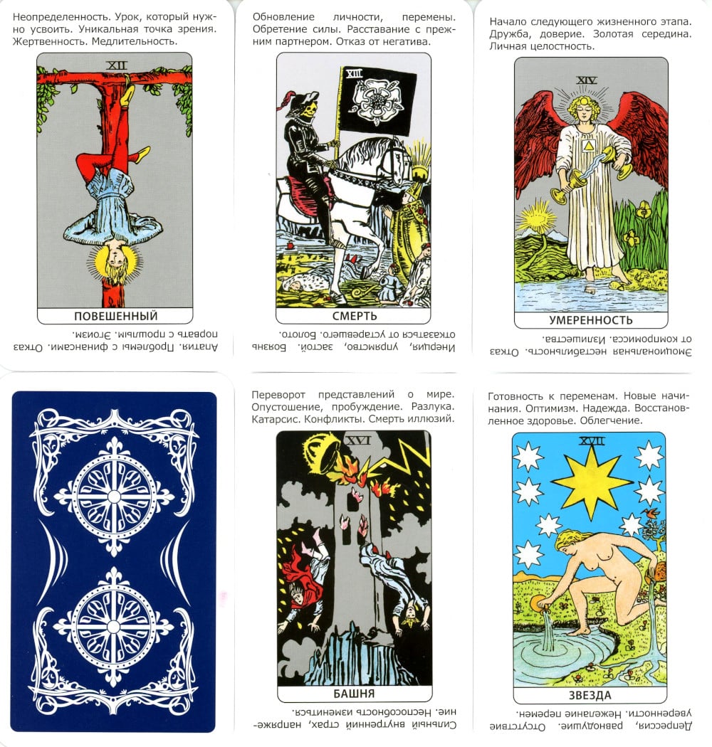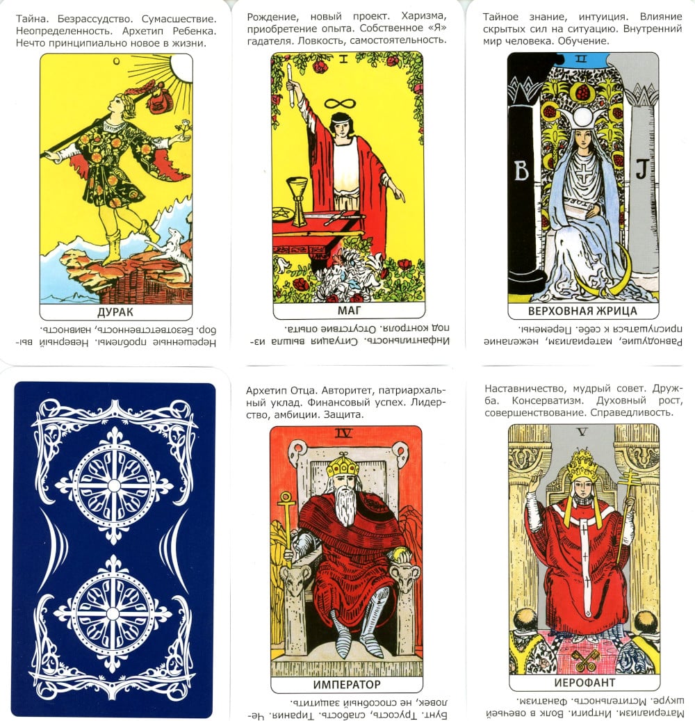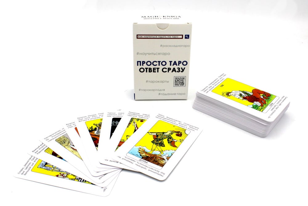 Эта колода призвана помочь начинающим тарологам разобраться в основных значениях Арканов и научиться читать расклады. • 78 Арканов с прямыми и перевернутыми значениями, написанными прямо на картах. • Две карты с изображениями раскладов. Начать изучать Таро - это просто.| Издательство | Издатель А.Г.Москвичев |