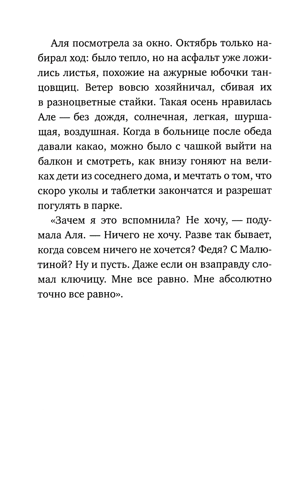 Герои повести «Просто возьми меня за руку» - подростки. Они ходят в школу, влюбляются, дружат и ссорятся, читают стихи и поют, иногда дерутся. Они вовсе не идеальны. У каждого из них есть своя история, чувства и переживания. Настоящие, как в жизни. Главная героиня Аля неизлечимо больна. Но она не делает из этого трагедии, не впадает в депрессию, хоть поддаться боли и страху в ее состоянии очень просто. Куда труднее - заставить себя не думать о болезни, не отчаиваться, а жить обычной жизнью. Как все. Бывает, у Али опускаются руки и будущее кажется ей невозможным, и тогда на помощь приходит любовь.| Издательство | Время |