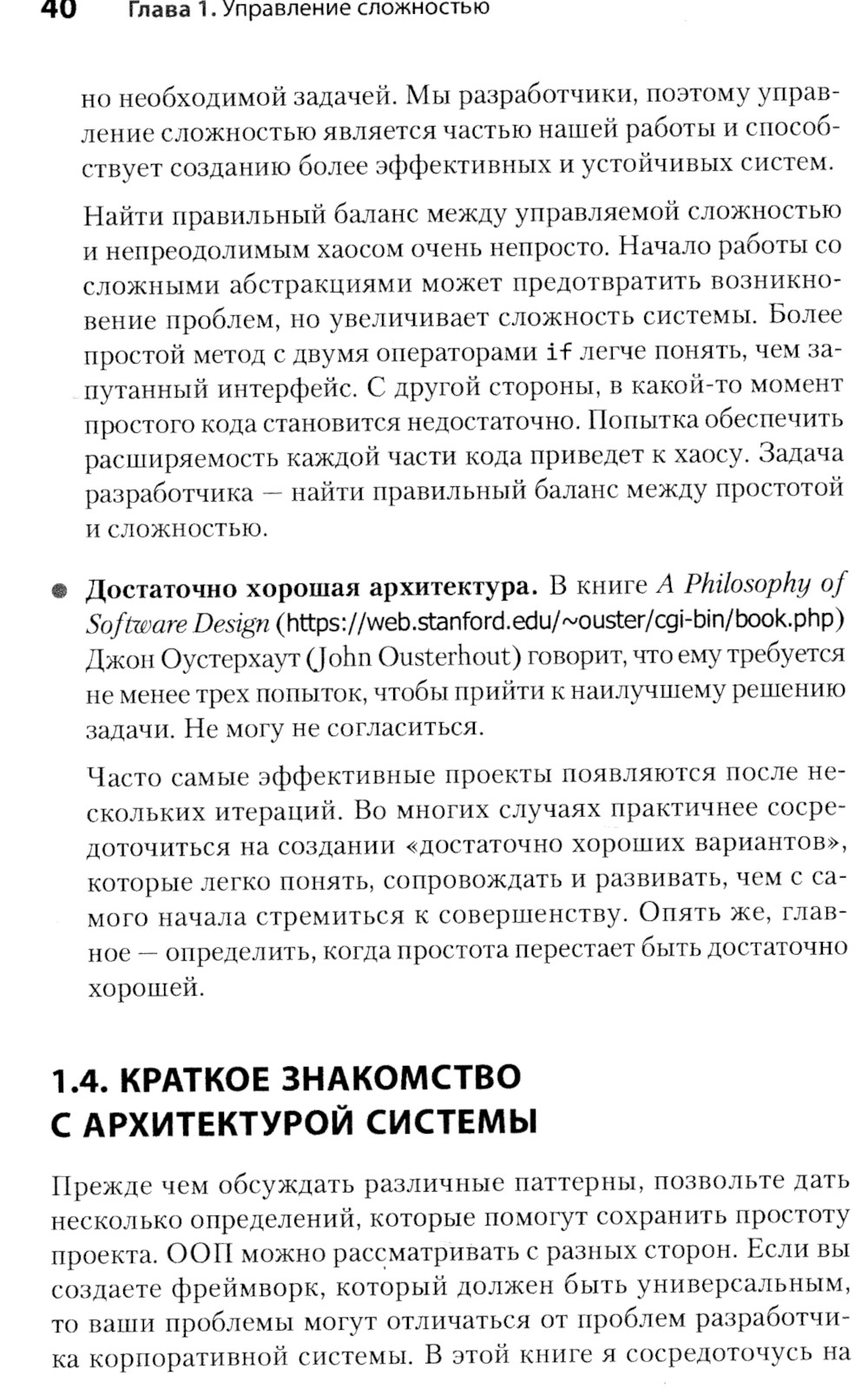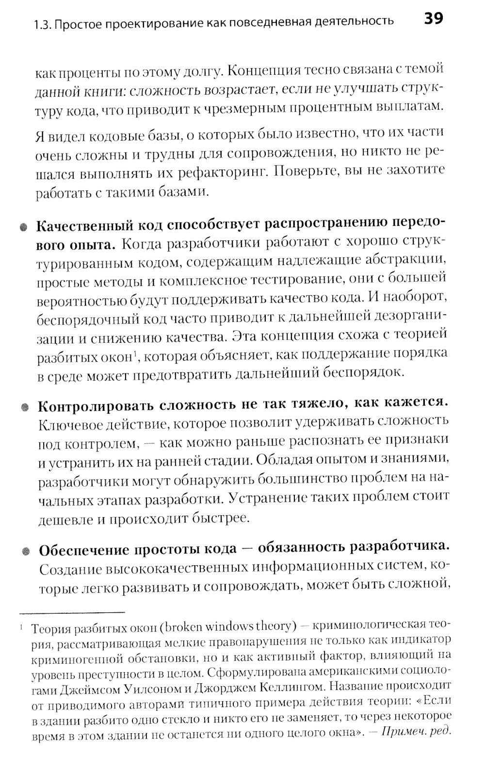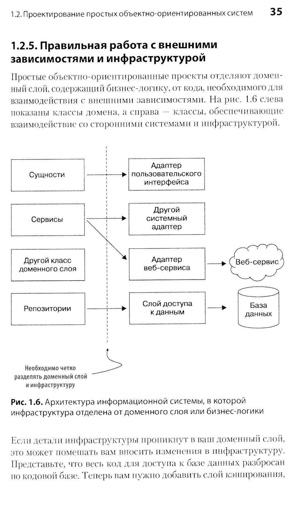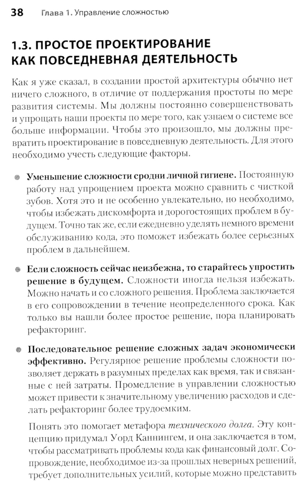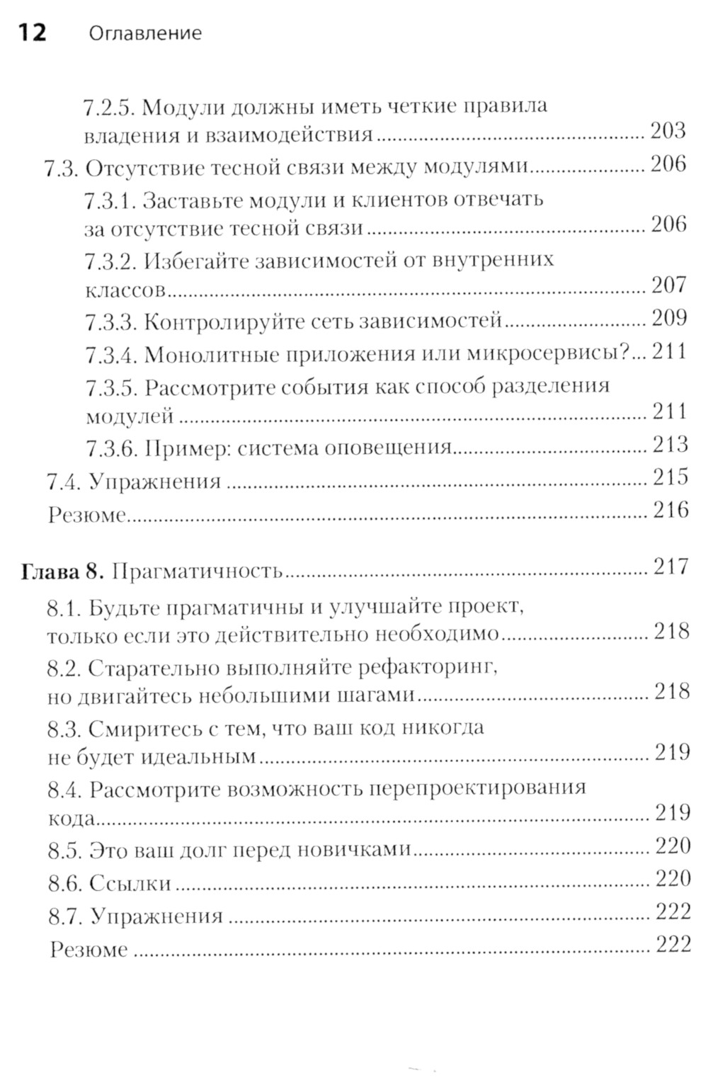 В процессе развития даже простое объектно-ориентированное приложение может стать сложным. Каждый новый класс, метод или функция добавляет новые состояния и абстракции, которыми нужно управлять, увеличивает время, необходимое на распутывание ранее написанного кода. Чтобы сохранить кодовую базу простой, нужны конкретные знания и умения. И вы их получите! Изучите практические принципы проектирования, помогающие сохранять простоту объектно-ориентированной кодовой базы по мере ее развития. Написанная в виде сборника практических приемов, которые можно применять в любом объектно-ориентированном языке, книга предлагает советы по организации кода, управлению зависимостями и модулями и проектированию гибких абстракций. Информативные иллюстрации, практические примеры и упражнения помогут вам быстрее запомнить описываемые принципы.| Издательство | Питер |