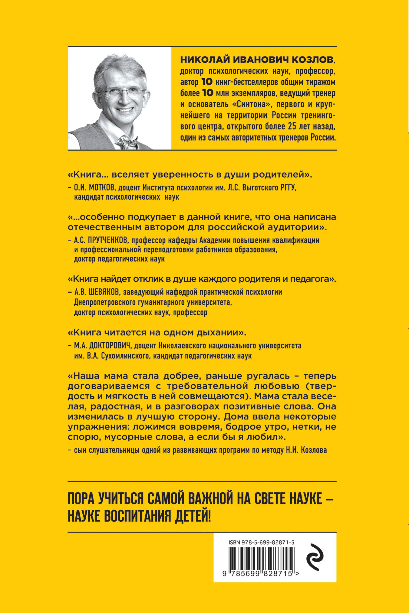 «Книгу Н.И.Козлова о воспитании детей читатель ждал, очевидно, давно. Это связано с тем, что очень мало сегодня добротных практически ориентированных изданий, связанных с психологическими проблемами родительско-детских отношений. А таких проблем накопилось достаточно, и количество их увеличивается со временем: как любить, воспитывать и развивать ребенка; что для этого делать не нужно; плаксивость, истероидность, детские фобии, стеснительность, вредные привычки, манипуляции, эмотивность. Автор подробно и увлекательно, ярко и убедительно растолковывает родителям, что и откуда берется и как все же воспитывать современного ребенка. Для этого пришлось обратиться, в частности, к первоистокам отечественной педагогики, а именно - к зарождению системы воспитания А. Макаренко. Кроме этого, развивается системный подход к педагогической проблеме - воспитывать должны и родители, и школа. Здесь возможны и уместны дискуссии: о единстве педагогических требований, о налаживании контакта, о наказаниях, послушании и лжи. По мнению автора, роль школы трудно переоценить в судьбоносной подготовке ребенка к большой жизни. Только при этом полезно помнить о правах и обязанностях детей, особенностях периода совершеннолетия, половом воспитании, зависимостях, регулировании психологической дистанции в общении и бесконечной детской и родительской любви. Таким образом, современная педагогика продолжает традиции гуманизма, когда ребенок имеет право не только на ошибку, но и на свободу учиться (по К. Роджерсу), а для педагога самое главное - создать условия для развития ученика. Книга найдет отклик в душе каждого родителя и педагога». - А.В. Шевяков, зав. кафедрой практической психологии Днепропетровского гуманитарного университета, доктор психологических наук, профессор «Актуальность темы книги обусловлена активными процессами обновления содержания российского образования, которое органично включает в себя и воспитание подрастающего поколения. В России уже второй год действует новый закон «Об образовании в Российской Федерации», который в статье 44 «Права, обязанности и ответственность в сфере образования родителей (законных представителей) несовершеннолетних обучающихся» зафиксировал положение о том, что родители (законные представители) несовершеннолетних обучающихся имеют преимущественное право на обучение и воспитание детей перед всеми другими лицами. Но одновременно в законе подчеркнуто, что родители обязаны заложить основы физического, нравственного и интеллектуального развития личности ребенка. А за неисполнение или ненадлежащее исполнение обязанностей, установленных настоящим Федеральным законом, родители (законные представители) несовершеннолетних обучающихся несут ответственность, предусмотренную законодательством Российской Федерации. Красивые и правильные слова, дело за малым - организовать педагогический ликбез и поддержку тех родителей, которые искренне хотят реально участвовать в воспитании своего ребенка, создавать все необходимые условия и т.д. Ведь парадокс заключается в том, что нас как родителей никто и нигде не учит. В советской школе был специальный курс «Этика и психология семейной жизни», разумеется, он не решал всех проблем, связанных с воспитанием детей, но они хотя бы слышали, что этим надо занимать