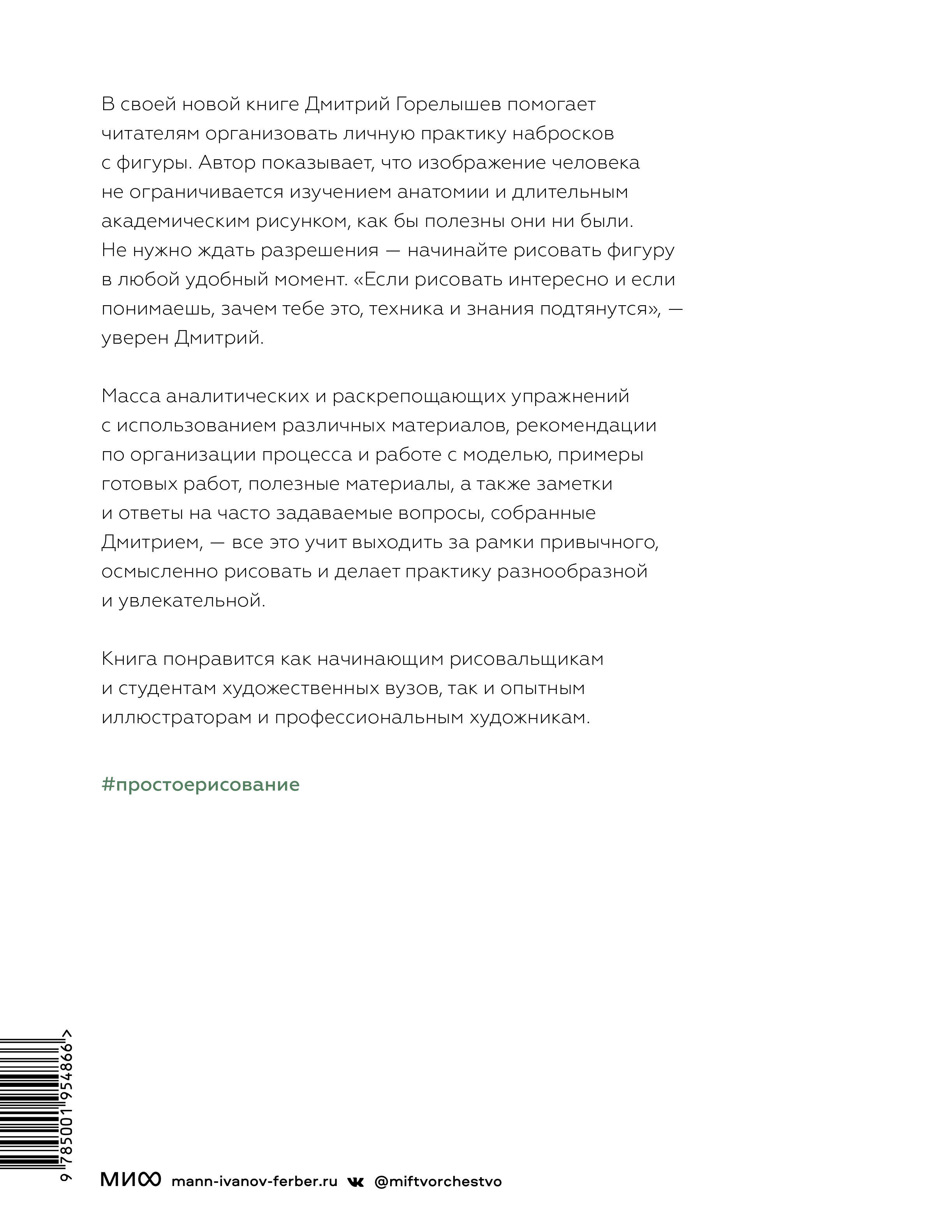 Раскрепощающие упражнения по авторской методике быстрого рисования. Самостоятельная практика набросков с фигуры. Книга не об академическом рисунке и не об анатомии.| Издательство | Манн, Иванов и Фербер |