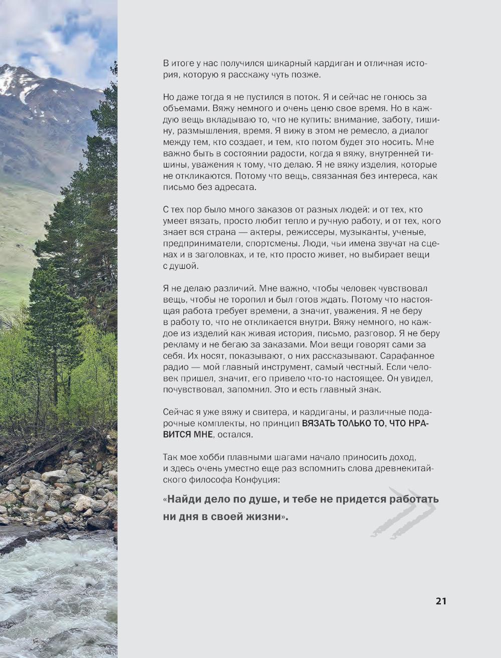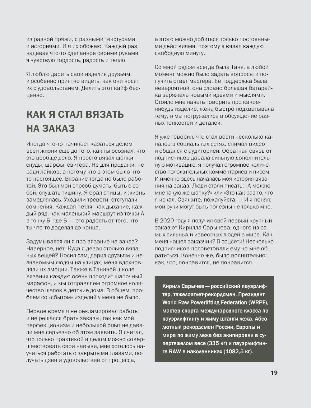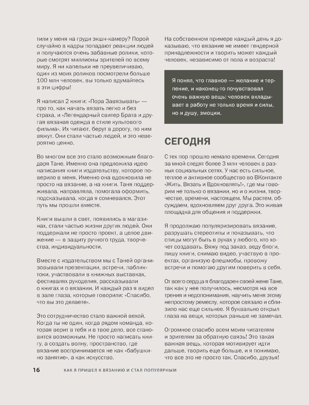 В книге: • 13 стильных моделей спицами: шапки, шарфы, жилет, бомбер, свитера, легендарные «Кардиганище» и «Легендарный Свитер» с вариациями и модификациями; • пошаговые инструкции и подробные фото - все доступно даже новичкам; • новые проекты и обновленные хиты, доработанные по отзывам тысяч читателей; • советы по выбору пряжи, инструментов и цветовых решений; • авторская философия «простое вязание - простые изделия»; • истории о том, как вязание меняет жизнь, объединяет и вдохновляет.| Издательство | Эксмо |