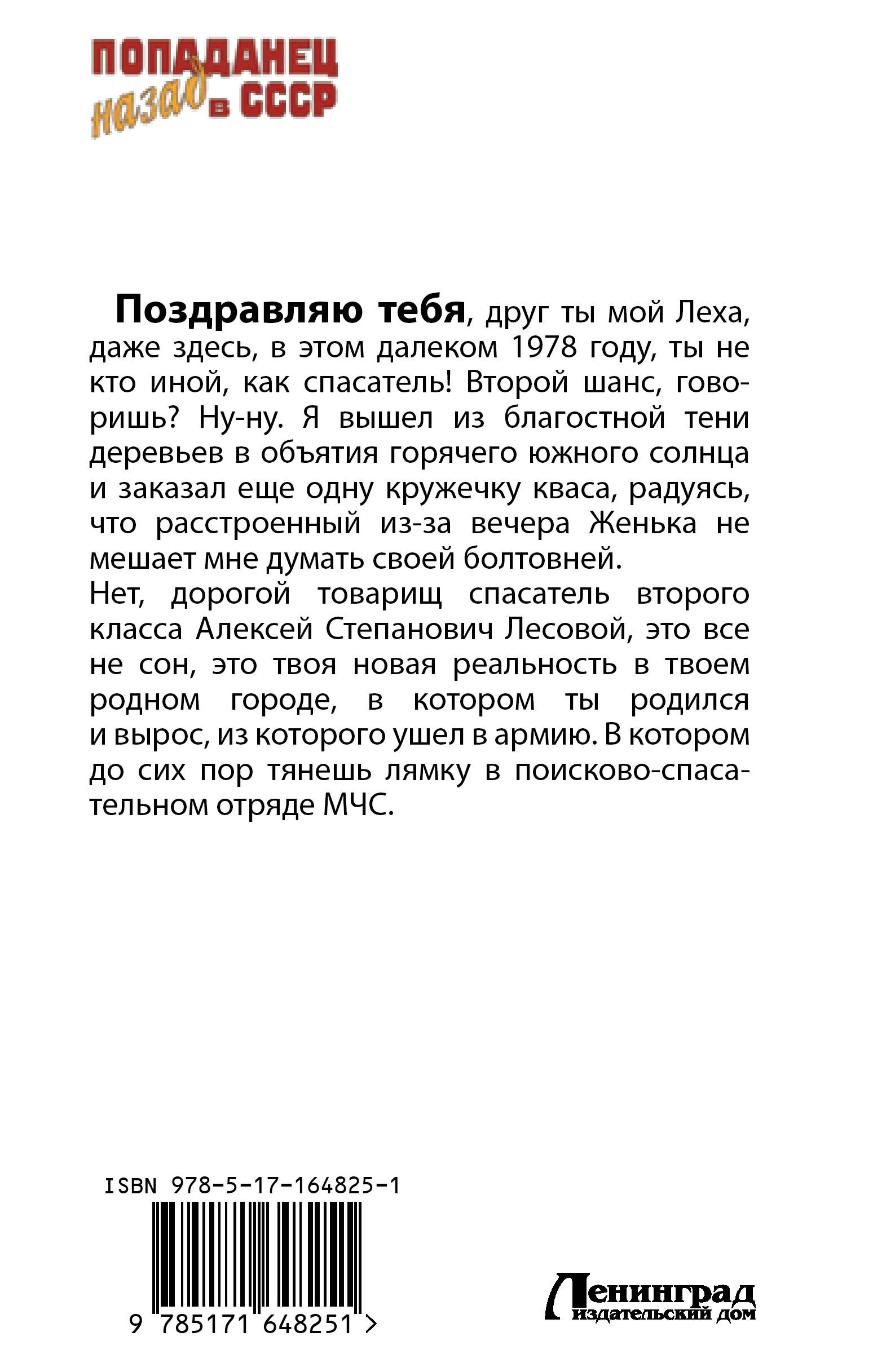 Спасатель МЧС всегда на службе, даже в ущерб собственной семье. Я был на работе, когда волею злого рока моя любимая женщина погибла в пожаре. Друзья и работа - все, что осталось у меня от прошлой жизни. В нынешней я пытался заглушить боль алкоголем. Но однажды "мотор" не выдержал, и я умер?.. Нет. Старушка судьба дала второй шанс. Мое сознание перенеслось в тело простого советского студента-второкурсника педагогического училища в далекий 1978 год. Курортный город, загорелые отпускницы, красивые студентки, верные друзья. Живи да радуйся. Но спасатель всегда остается спасателем. А где-то живет та, ради которой я готов отдать свою новую жизнь без остатка…| Издательство | Издательство "АСТ" |