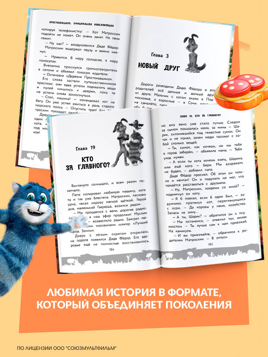 Дядя Фёдор никакой не "дядя", а мальчик, просто очень самостоятельный и серьёзный. А ещё он любит животных. Но его родители и слышать ничего не хотят о том, чтобы в их квартире завёлся кто-то хвостатый или лохматый. И приходится Дяде Фёдору со своим новым приятелем - говорящим котом Матроскиным - отправиться жить в деревню Простоквашино. А там они знакомятся с псом Шариком, неугомонным галчонком Хватайкой и вредным почтальоном Печкиным.| Издательство | Издательство "АСТ" |