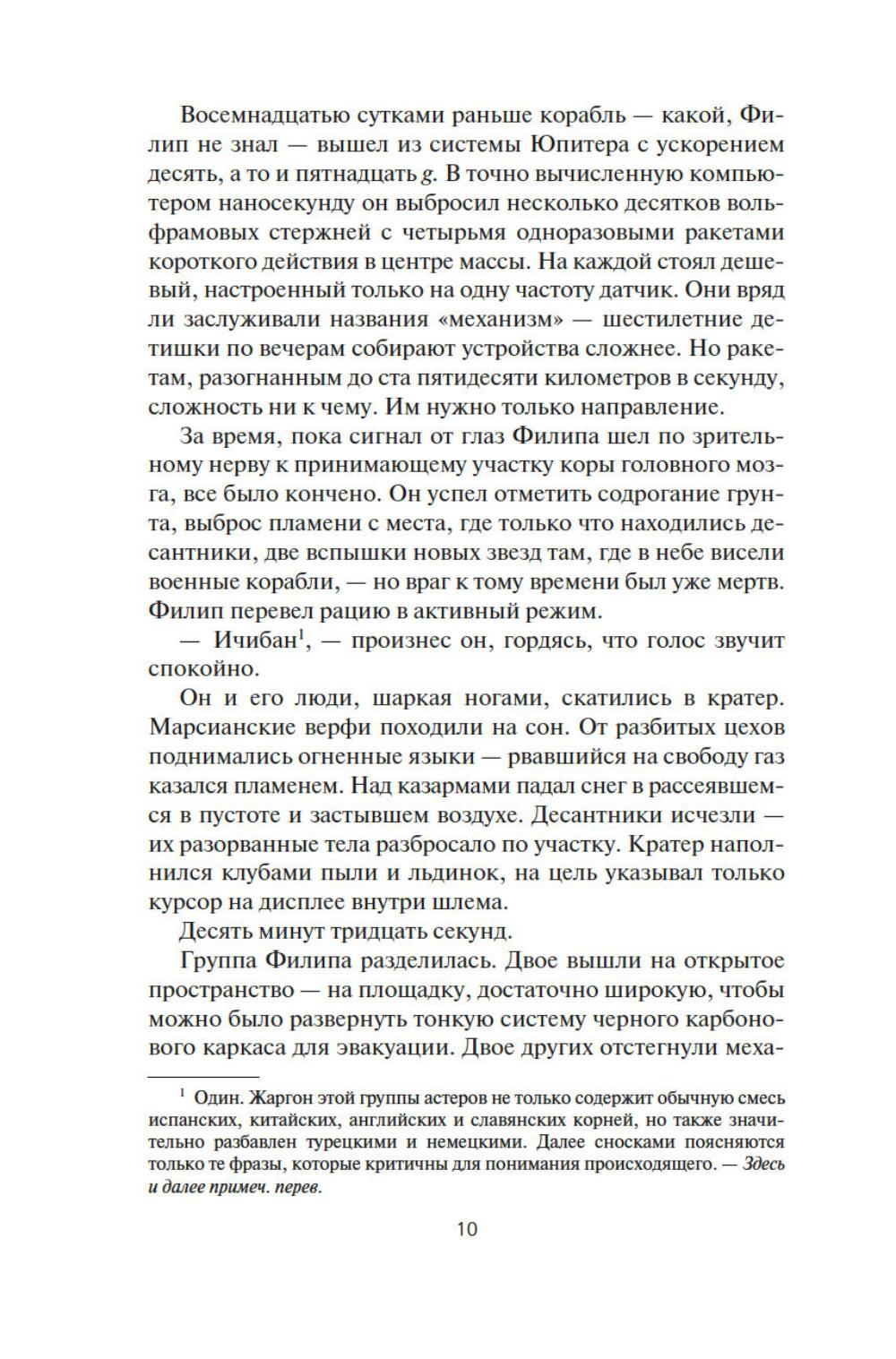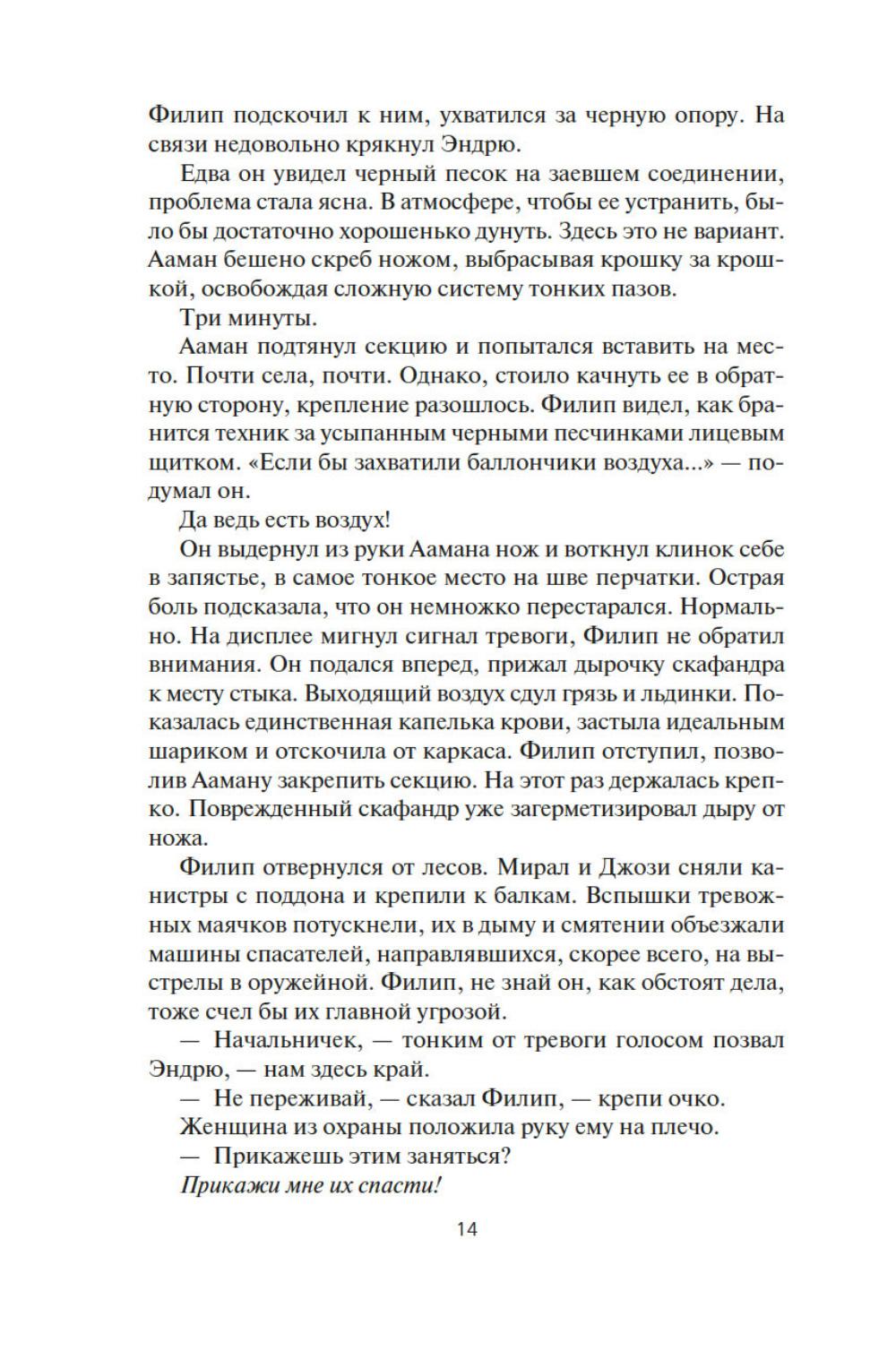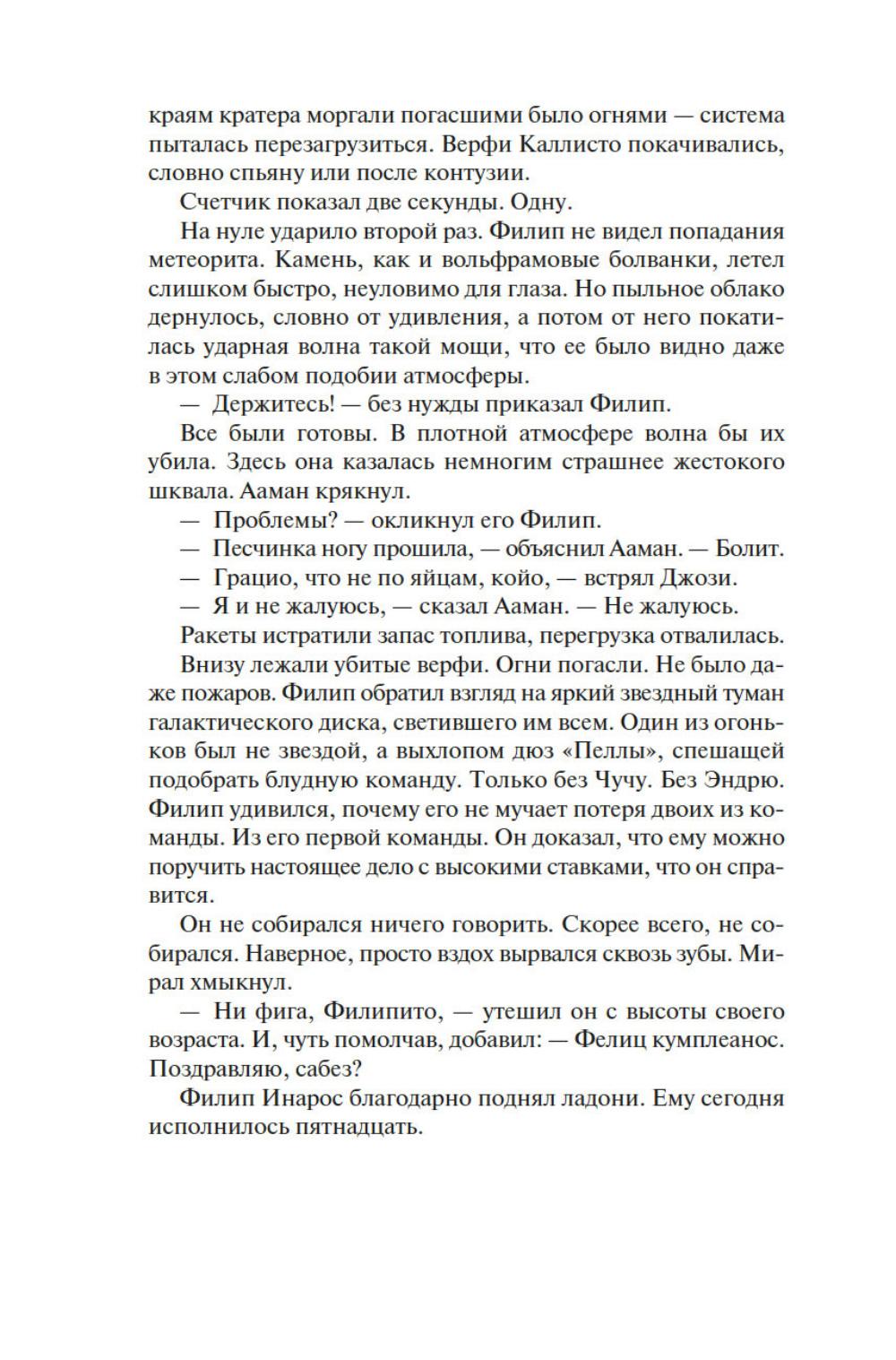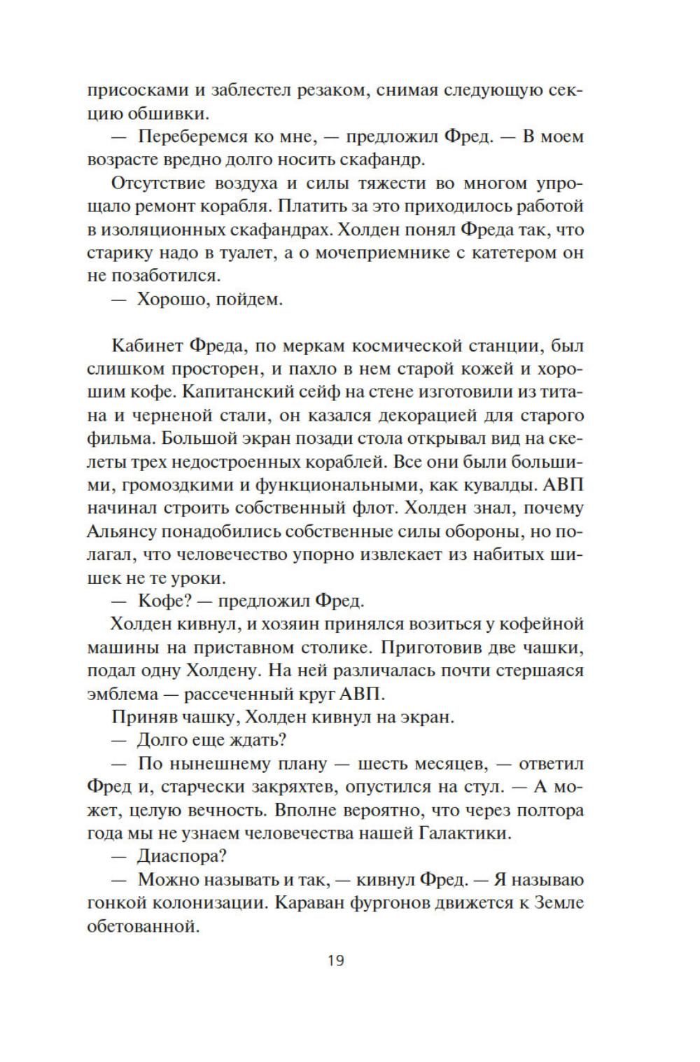 СОДЕРЖИТ ИНФОРМАЦИЮ О НАРКОТИЧЕСКИХ ИЛИ ПСИХОТРОПНЫХ ВЕЩЕСТВАХ, УПОТРЕБЛЕНИЕ КОТОРЫХ ОПАСНО ДЛЯ ЗДОРОВЬЯ. ИХ НЕЗАКОННЫЙ ОБОРОТ ВЛЕЧЕТ УГОЛОВНУЮ ОТВЕТСТВЕННОСТЬ. Пути к тысячам миров внезапно открылись перед человечеством, и началась охота за колониями, какой еще не бывало в его истории. Волна за волной переселенцы отправляются в космос, а тем временем на их родине, в Солнечной системе, катастрофически слабеет государственная власть. Бесследно исчезают корабли. Тайно формируются частные армии. Выкраден последний образец протомолекулы. Террористы своими акциями добиваются того, о чем прежде и мечтать не смели, - подчинения внутренних планет. Пришла расплата за старые грехи, и цена их чудовищна. А пока в огне и крови рождается новый порядок, Джеймс Холден и экипаж «Росинанта» вынуждены бороться, чтобы выжить и вернуться домой.| Издательство | Азбука |