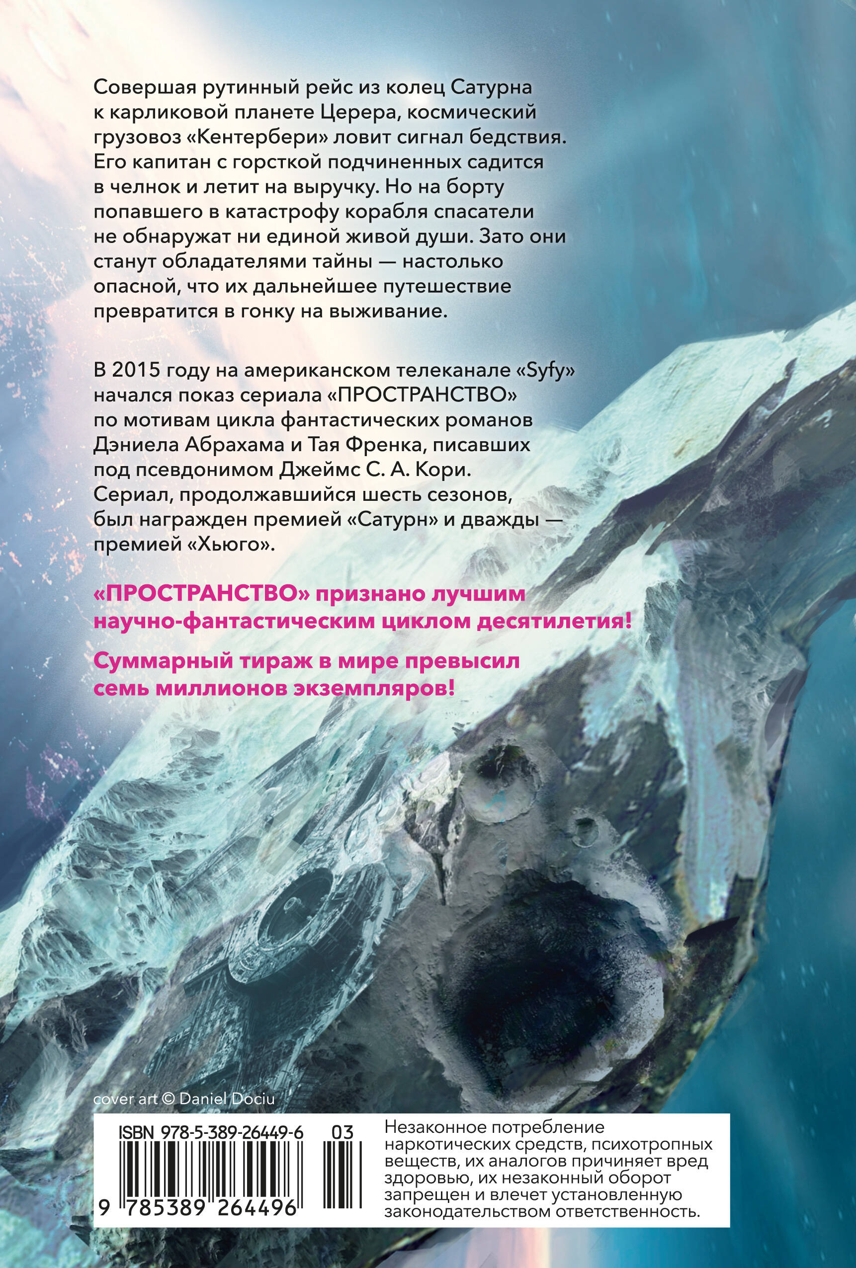 "Пространство" признано лучшим научно-фантастическим циклом десятилетия! Суммарный тираж в мире превысил семь миллионов экземпляров! Одноименный телесериал выдержал целых шесть сезонов! Совершая рутинный рейс из колец Сатурна к карликовой планете Церера, космический грузовоз "Кентербери" ловит сигнал бедствия. Его капитан с горсткой подчиненных садится в челнок и летит на выручку. Но на борту попавшего в катастрофу корабля спасатели не обнаружат ни единой живой души. Зато они станут обладателями тайны - настолько опасной, что их дальнейшее путешествие превратится в гонку на выживание. В 2015 году на американском телеканале "Syfy" начался показ сериала "Пространство" по мотивам цикла фантастических романов Дэниела Абрахама и Тая Френка, писавших под псевдонимом Джеймс С. А. Кори. Сериал, продолжавшийся шесть сезонов, был награжден премией "Сатурн" и дважды - премией "Хьюго". Суммарный тираж цикла романов "Пространство" достиг семи миллионов экземпляров.| Издательство | Азбука-Аттикус Издат.группа ООО |
