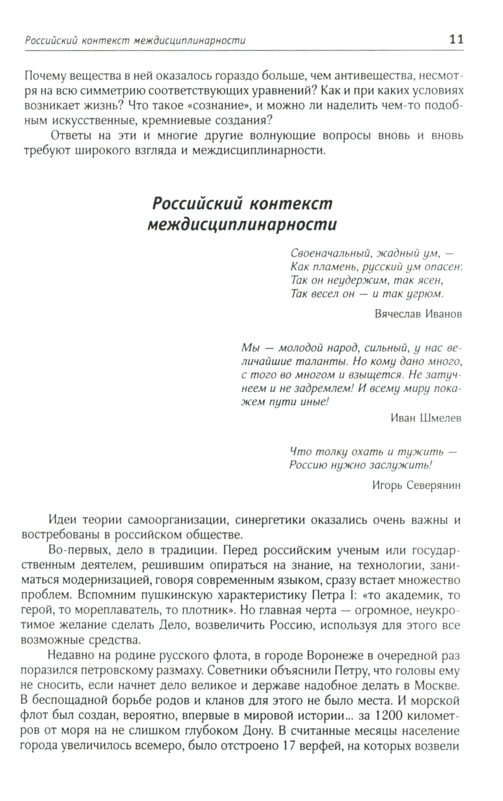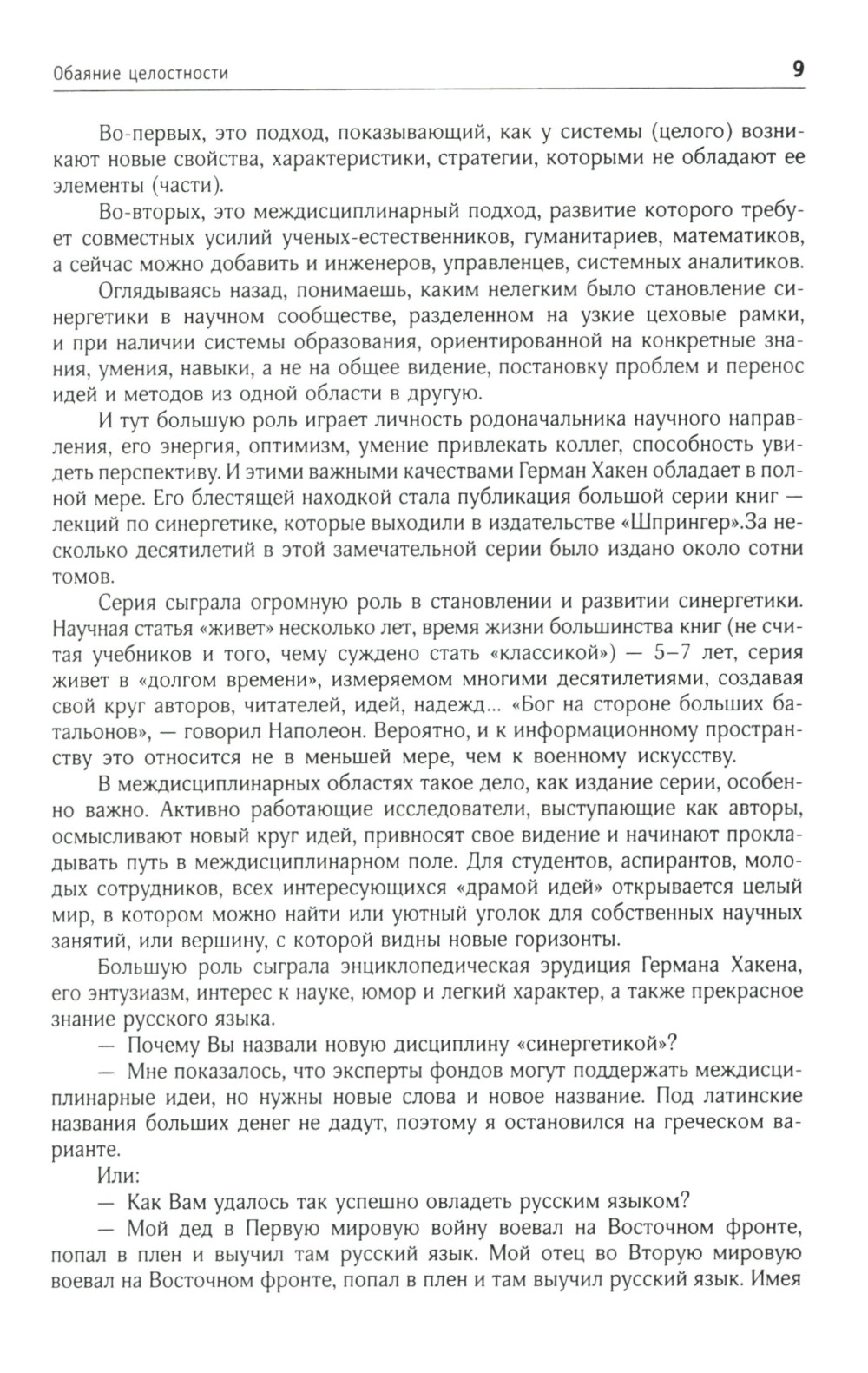 На сегодняшний день синергетика представляет собой одну из наиболее значимых альтернатив в сфере междисциплинарного диалога между естественными и социально-гуманитарными науками. В России данное течение (во многом благодаря высокому уровню разработок в математике и физике) приобрело особую популярность. В настоящей книге рассматриваются новые идеи, направления и проблемы в области междисциплинарных исследований, появившиеся в последнее десятилетие. Книга приурочена к десятилетию серии "Синергетика: от прошлого к будущему", выпускаемой издательством URSS, и может служить путеводителем по миру междисциплинарных исследований. Даже беглого взгляда на длинные ряды с книгами, вышедшими в серии, достаточно, чтобы оценить разнообразие подходов и направлений, объединенных под общим названием "синергетика". Рассказ о проблемах синергетики, научных школах и людях, занимающихся ими, делает книгу интересной для широкого круга читателей - от школьников и студентов до руководителей и исследователей.| Издательство | ЛЕНАНД |