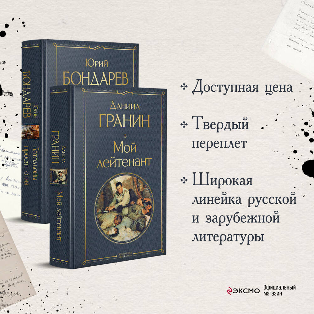 В комплект вошли книги из серии «Всемирная литература» двух выдающихся писателей-фронтовиков Даниила Гранина («Мой лейтенант») и Юрия Бондарева («Батальоны просят огня»). Будучи непосредственными участниками Великой Отечественной войны, авторы максимально реалистично описывали и эпические моменты сражений, и трагические судьбы героев, и простой солдатский быт. Произведения обоих писателей были экранизированы и вошли в «золотой фонд» советского кино.| Издательство | Эксмо |