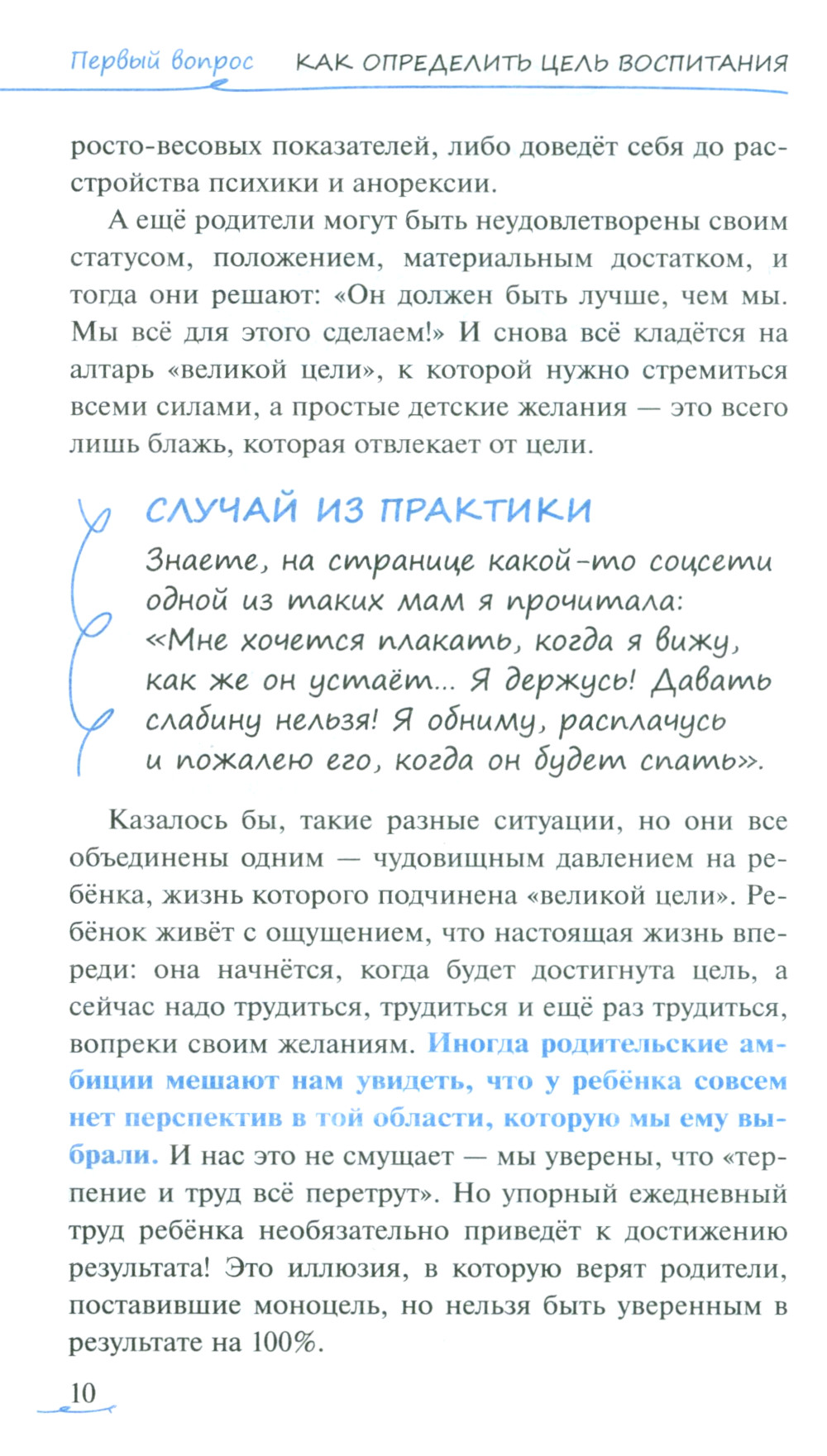 Многие родители при воспитании ребёнка часто задаются вопросом: «А правильно ли я всё делаю? » Ведь каждый хочет стать совершенным родителем и выглядеть в глазах ребёнка самой лучшей мамой или самым лучшим папой. Но вы должны понять и принять тот факт, что совершенных родителей не существует, так же как и совершенных детей. Однако если есть возможность избежать ошибок и найти ответы на важные вопросы, возникающие в процессе родительства, то нужно это сделать! Прочитав эту книгу, вы найдёте ответы на те вопросы, которые являются наиболее актуальными для большинства родителей по детской психологии. Как определить цель воспитания ребёнка? Как правильно устанавливать границы для ребёнка? Как правильно делать ребёнку замечания? Издание предназначено для родителей, которые хотят научиться правильно взаимодействовать с детьми, получая истинную радость от общения и своего родительства.| Издательство | Просвещение |