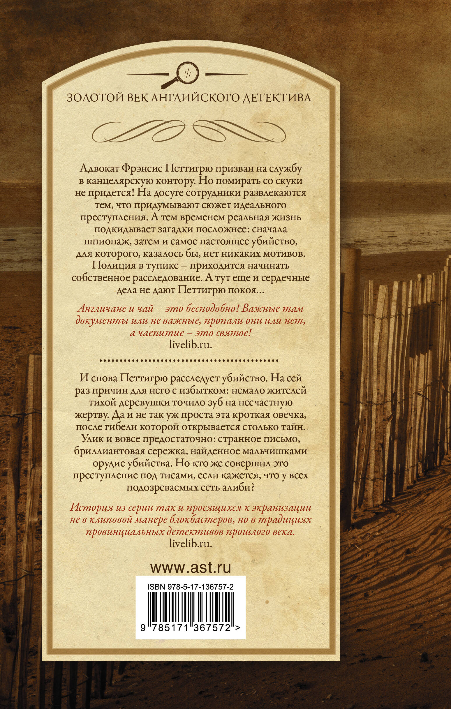 Адвокат Фрэнсис Петтигрю призван на службу в канцелярскую контору. Но помирать со скуки не придется! На досуге сотрудники развлекаются тем, что придумывают сюжет идеального преступления. А тем временем реальная жизнь подкидывает загадки посложнее: сначала шпионаж, затем и самое настоящее убийство, для которого, казалось бы, нет никаких мотивов. Полиция в тупике - приходится начинать собственное расследование. А тут еще и сердечные дела не дают Петтигрю покоя… И снова Петтигрю расследует убийство. На сей раз причин для него с избытком: немало жителей тихой деревушки точило зуб на несчастную жертву. Да и не так уж проста эта кроткая овечка, после гибели которой открывается столько тайн. Улик и вовсе предостаточно: странное письмо, бриллиантовая сережка, найденное мальчишками орудие убийства. Но кто же совершил это преступление под тисами, если кажется, что у всех подозреваемых есть алиби?| Издательство | ИЗДАТЕЛЬСТВО "АСТ" |