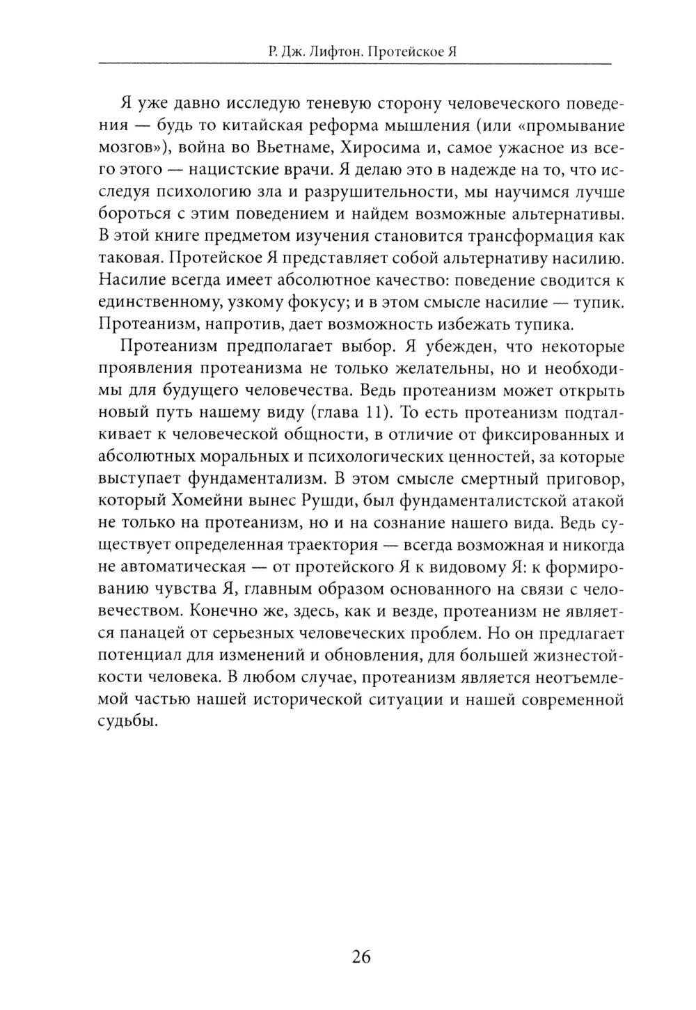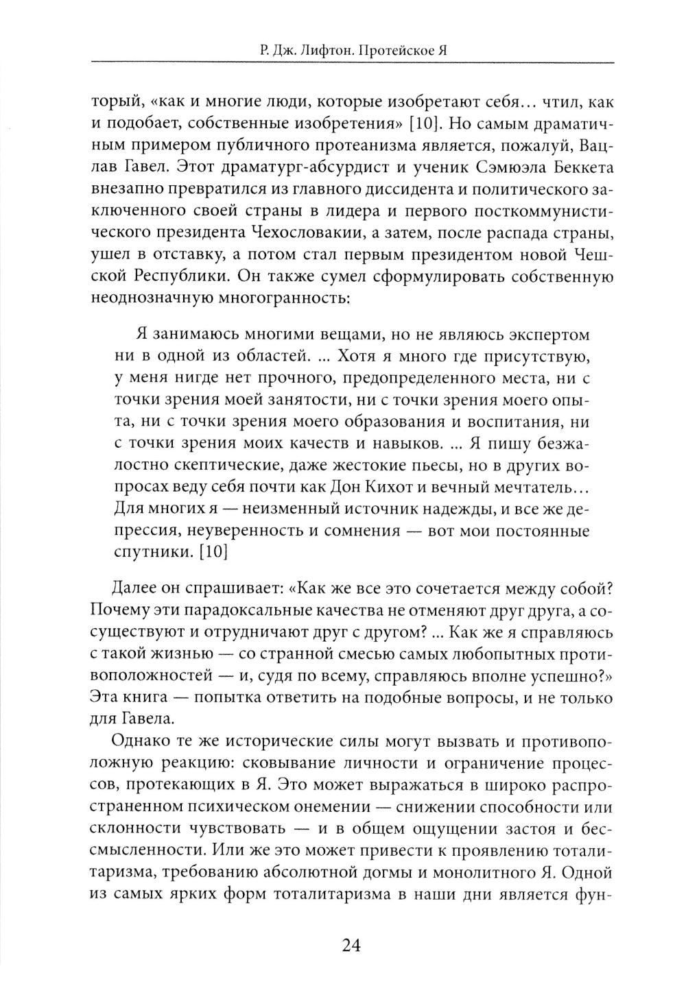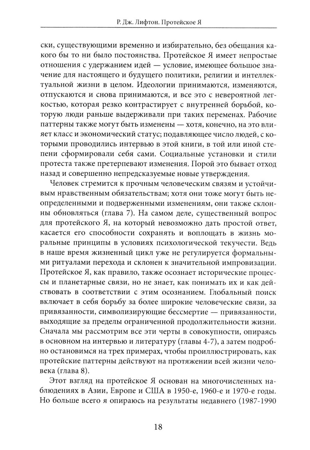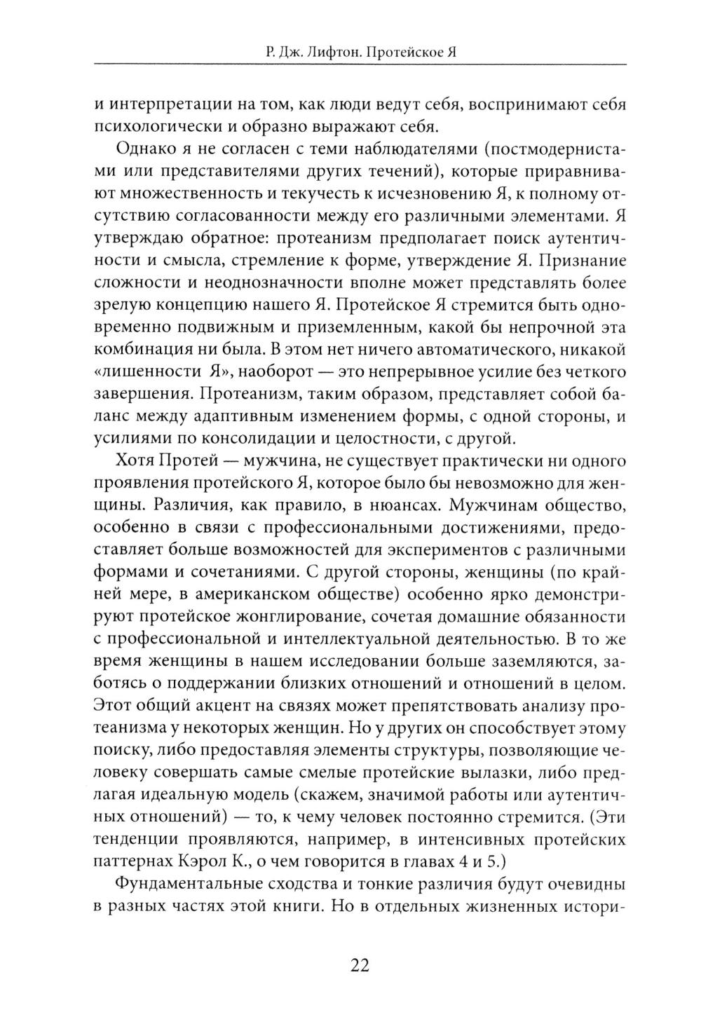 «Протеанизм», или протейское Я, описывает психологический феномен, являющийся неотъемлемой частью нашего существования. Мы живем в мире огромных исторических перемен и глобальной коммуникации. Наша жизнь кажется совершенно непредсказуемой, и в ней мало абсолютных величин. Роберт Джей Лифтон показывает нам, что Я, вместо того чтобы рухнуть под этими угрозами и натиском, оказывается на удивление устойчивым. Подобно греческому богу Протею, способному до неузнаваемости изменить свой облик в критических ситуациях, принимая порой самые фантастические образы, мы создаем все новые и новые психологические комбинации, погружаясь на протяжении всей нашей жизни в удивительные и неизведанные ранее начинания.| Издательство | Институт общегуманитарных исследований (ИОИ) |