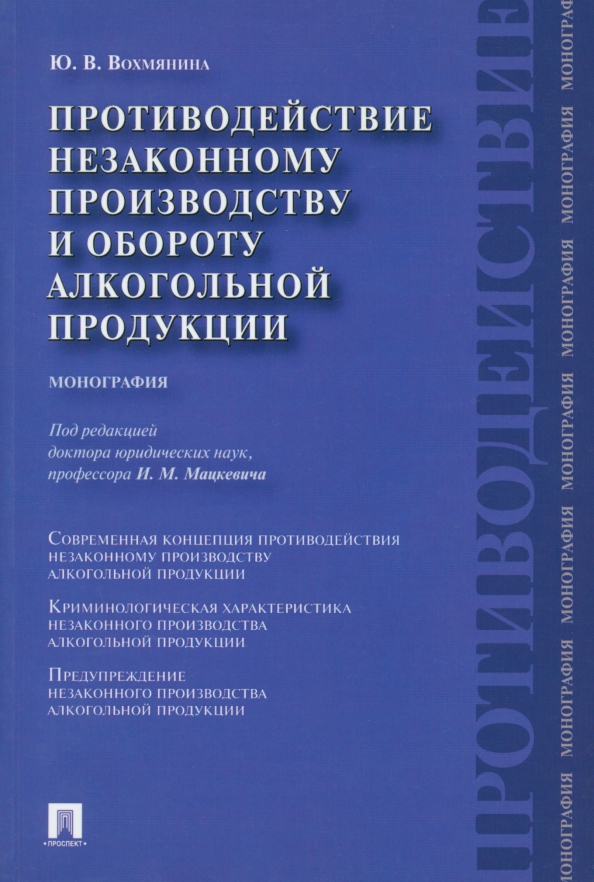 Настоящая монография посвящена борьбе с незаконным производством и оборотом алкогольной продукции. В работе дается понятие преступной деятельности по незаконному производству и обороту алкогольной продукции, раскрываются признаки этой деятельности, дана криминологическая характеристика ее форм и видов. Освещены проблемы алкоголизации россиян, раскрываются причины отравления фальсифицированной алкогольной продукцией, предлагаются различные меры противодействия как незаконному производству и обороту алкогольной продукции, так и смягчению последствий от пьянства и алкоголизма граждан. Монография представляет интерес для криминологов, социологов, специалистов уголовного и административного права, а также для всех, кто интересуется проблемами незаконного производства алкоголя. ГРИФ: «Рекомендовано Союзом криминалистов и криминологов» для студентов, аспирантов, преподавателей, научных и практических работников.