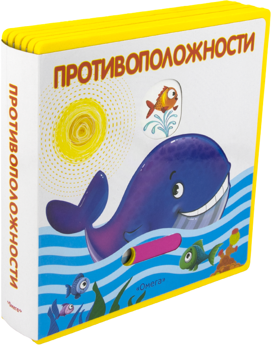 Развивающая книжка «Противоположности», выпущенная в серии «Подвижные картинки» издательства «Омега», относится к категории самых первых книжек для малышей.