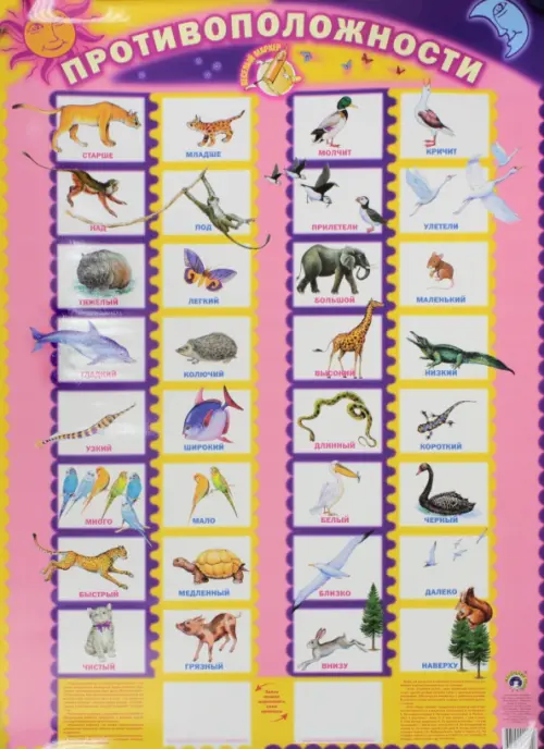 С помощью этого плаката ребенок научится правильно использовать слова с противоположным значением (антонимы), расширит словарный запас и обогатит свою речь.