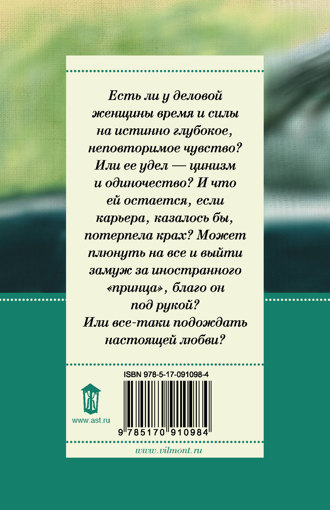 Есть ли у деловой женщины время и силы на истинно глубокое, неповторимое чувство? Или ее удел - цинизм и одиночество? И что ей остается, есл и карьера, казалось бы, потерпела крах? Может, плюнуть на все и выйти замуж за иностранного "принца", благо он под рукой? Или все-таки подождать настоящей любви?| Издательство | Издательство "АСТ" |