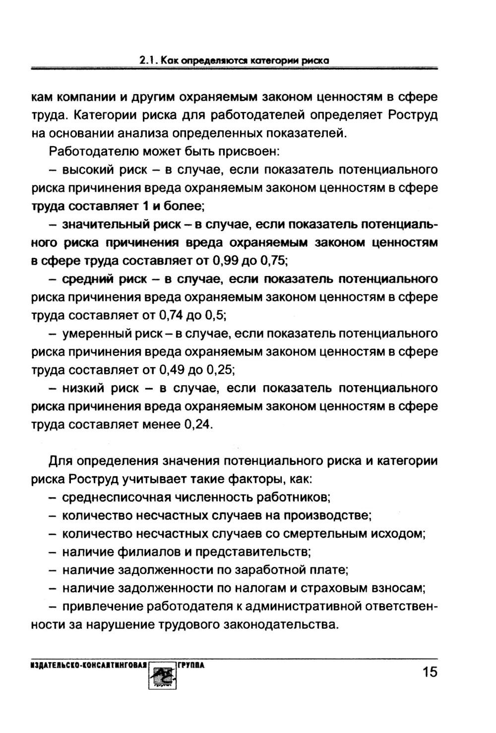 Эта книга должна быть в каждой организации и у каждого предпринимателя, имеющего наемных работников. В ней вы найдете полную информацию о профилактических мероприятиях, плановых и внеплановых проверках, которые проводятся трудовой инспекцией. Что может послужить причиной проверки? Как определяется категория рисков? Что будут проверять инспекторы? Какие нарушения чаще всего обнаруживаются? Какие санкции могут грозить по результатам проверки? Что такое «профилактический визит»? Как обезопасить себя от претензий проверяющих? В книге даются ответы на эти и другие вопросы, а также приводятся рекомендации, позволяющие снизить риски привлечения к ответственности за нарушения в области трудовых отношений.| Издательство | АйСи Групп |