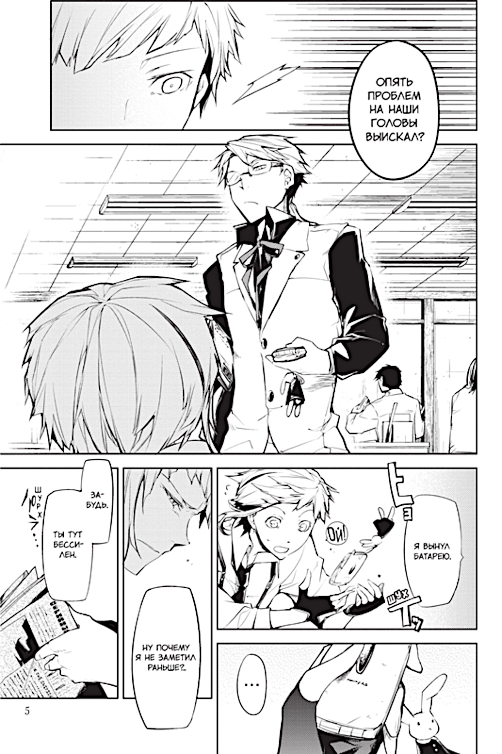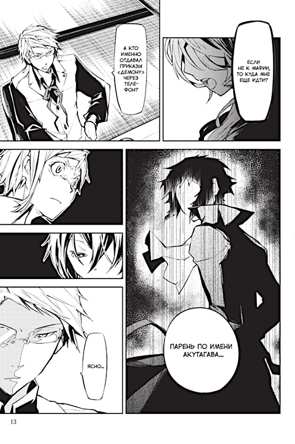 Кёка Идзуми воспротивилась приказу мафии и едва не погибла по собственной вине. Ацуси Накадзима спас ее да еще тофу накормил - все ради того, чтобы выведать ценные сведения… Только мир и покой продлились недолго: Акутагава разработал коварный план похищения Ацуси. Тем временем перед закованным в цепи Дадзаем предстал бывший товарищ-мафиози, а теперь его недруг - Тюя Накахара. Дадзай Осаму против Тюи Накахары, Рюноскэ Акутагава против Ацуси Накадзимы… К чему приведет крупный конфликт между вооруженными детективами и мафией? В книгу вошли 3-й и 4-й тома оригинальной манги, главы 9-16. Здесь завершается арка «Портовая мафия», начинается арка «Гильдия».| Издательство | ЭксЭл Медиа |