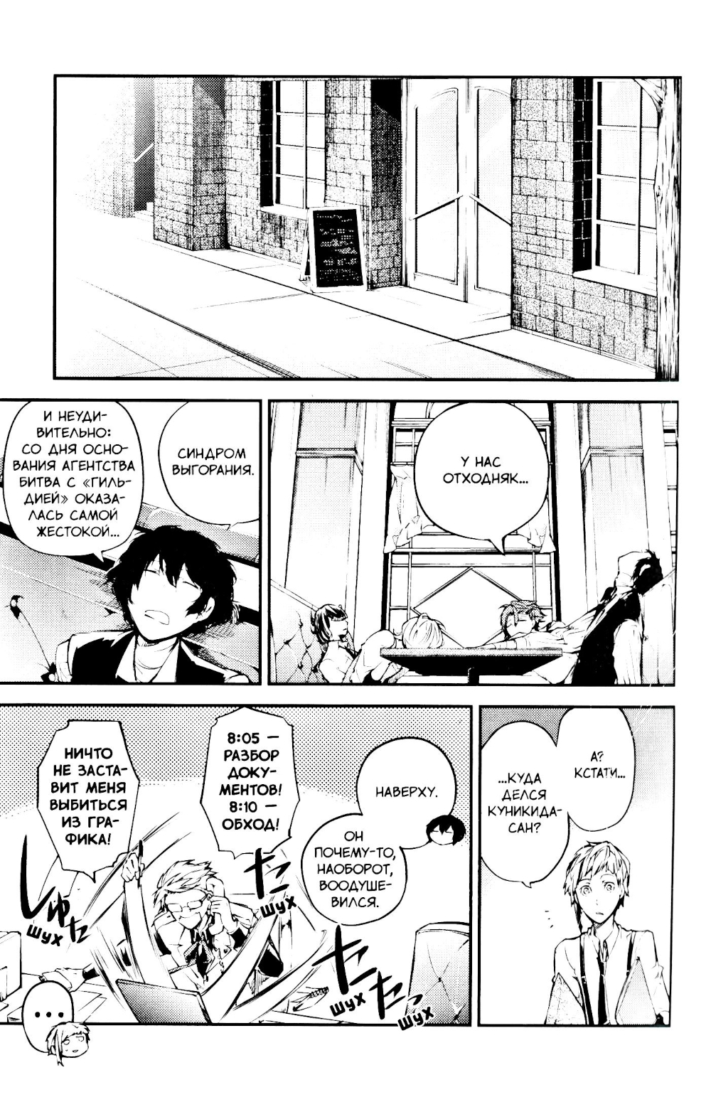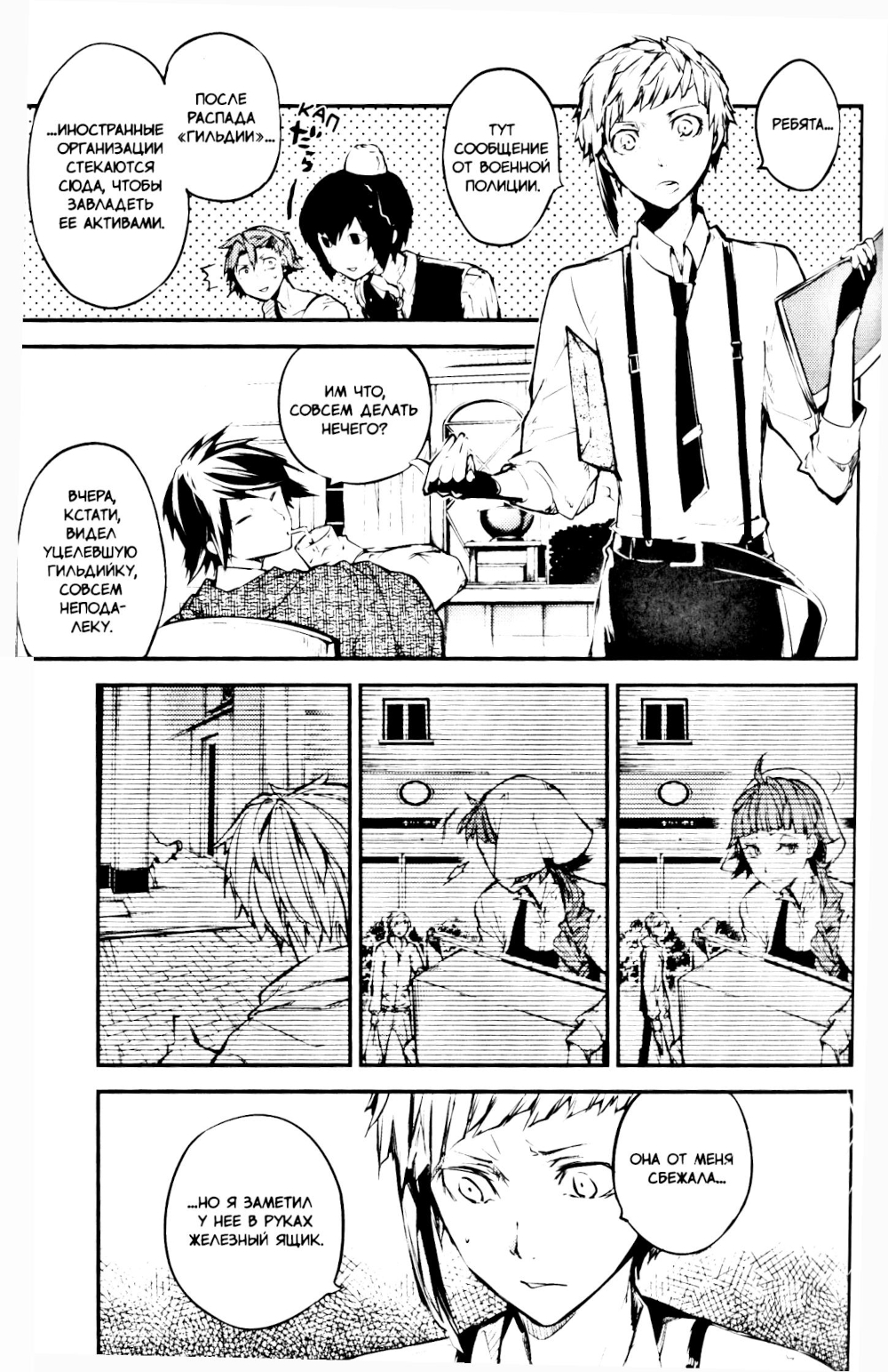Ацуси хочет остановить «Крушение Моби Дика» - предотвратить вторую стадию плана по сожжению Иокогамы. Но путь ему преграждает Акутагава: преследуя Ацуси, он тоже пробирается на корабль. Там их встречает Фицджеральд - и Трехсторонняя битва снова в самом разгаре! Перед Ацуси и Акутагавой предстает могучая способность противника «Великий Фицджеральд» - и они моментально терпят поражение. Детектив и мафиози питают друг к другу лишь ненависть, но все же оба знают, что нужно сделать, чтобы избежать крушения... История о противостоянии «Гильдии» подходит к кульминации!| Издательство | ЭксЭл Медиа |