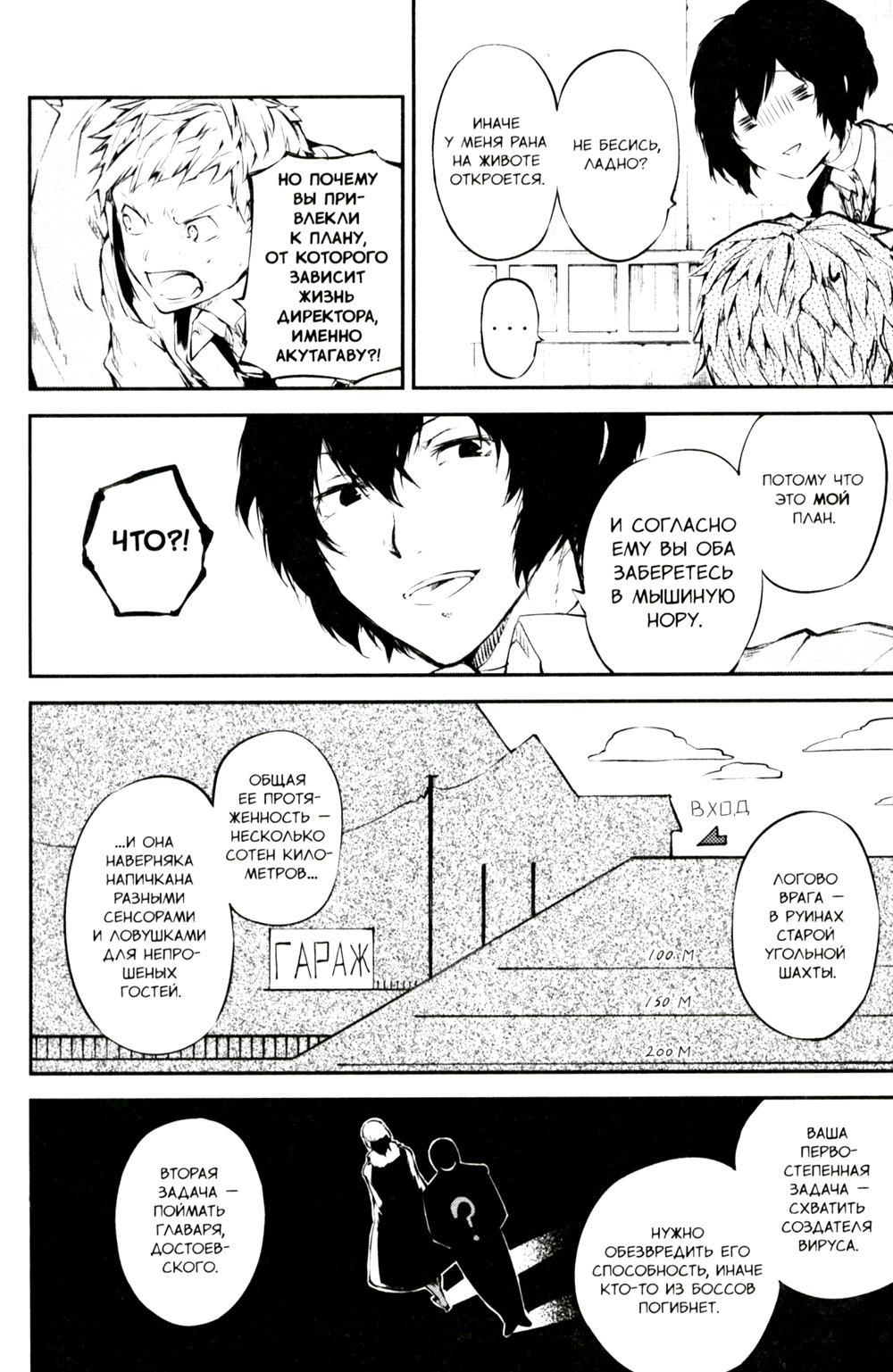 В самый разгар конфликта между мафией и детективным агентством наконец-то на сцену выходит знаменитый Сосэки Нацумэ. Он и выживший Катай приносят ценные сведения: Достоевский обустроил себе логово прямо в Иокогаме, в развалинах старой шахты. По приказу Дадзая Ацуси и Акутагава должны будут проникнуть туда, причем работая в паре… Пока они грызутся, объявляется создатель «Каннибализма» Пушкин, а еще - слуга Достоевского с фамилией Гончаров. Смогут ли сыщик и мафиози одолеть Достоевского? Впереди битва, которая и решит, кому жить, а кому - умереть.| Издательство | ЭксЭл Медиа |