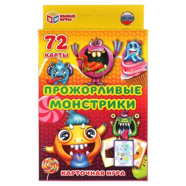 Прожорливые монстрики. Карточная игра. Кор. с европодвесом. Карточки 72 шт. Умные игры в кор.40шт