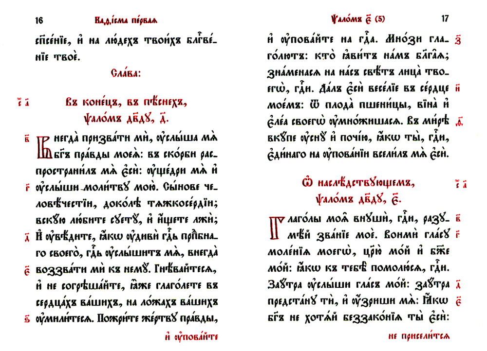 В данном издании приводится текст Пслатири, напечатанный церковно-славянским шрифтом. Рекомендовано Издательским советом РПЦ.