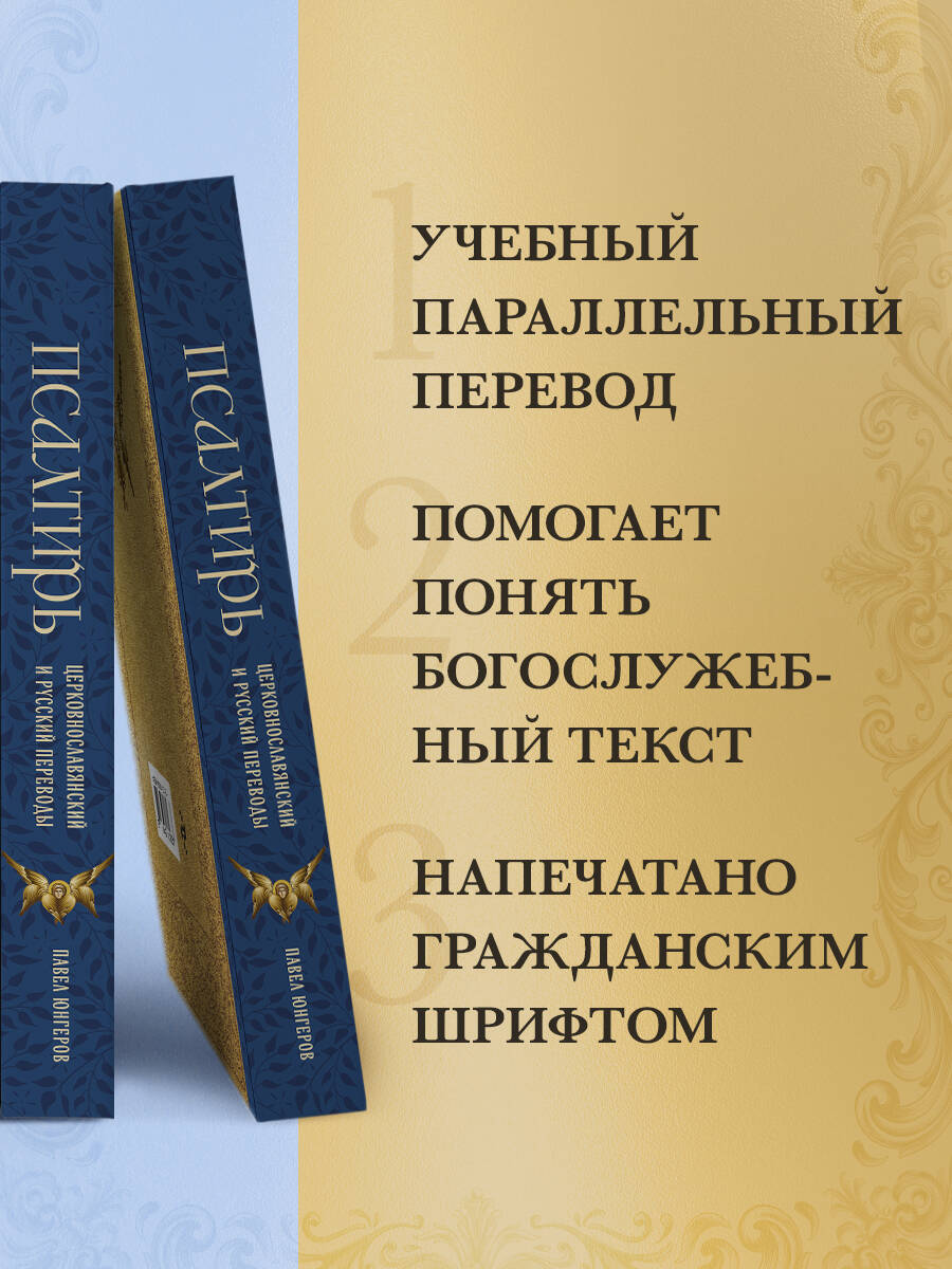 Псалтирь на церковно-славянском языке с параллельным переводом на русский язык, выполненный выдающимся русским ученым П.А. Юнгеровым. Перевод получил одобрение Священного Синода в 1876 г. Вновь начал издаваться по благословению Святейшего Патриарха Алексия II. Разработанный святыми равноапостольными Кириллом и Мефодием, церковно-славянский язык является языком православного богослужения. Перевод П.А. Юнгерова приближает греческую Псалтирь к славянской традиции и делает ее доступной для современных читателей. Этот учебный перевод дает уникальную возможность изучить Псалтирь и расширить свои знания о русской культуре и религиозной традиции, углубить свою духовную связь с Богом.| Издательство | ООО "Издательство "Эксмо" |