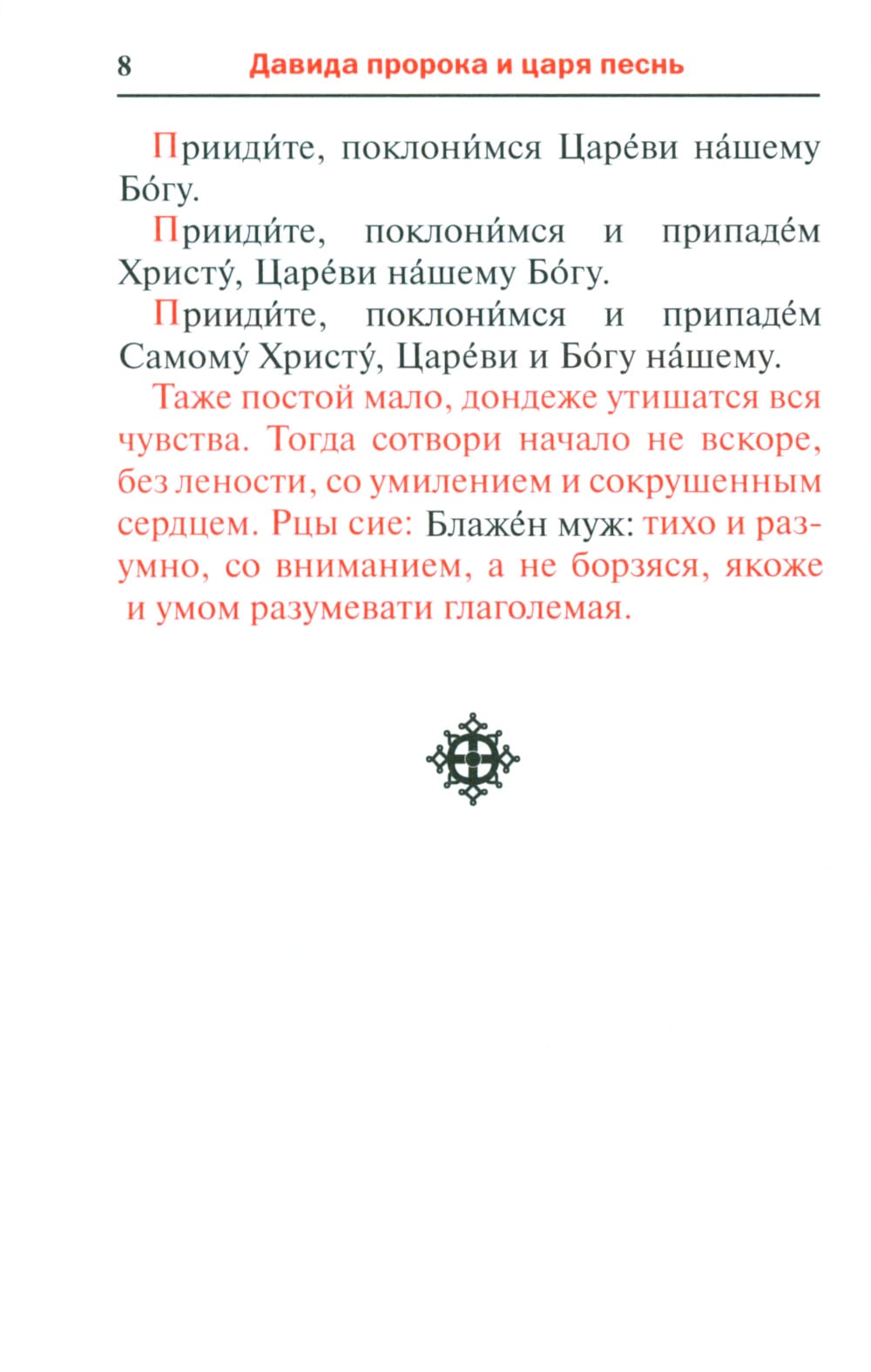 Аннотация: Псалтирь. Давида пророка и царя песнь. Заупокойная лития мирским чином. Иные молитвословия