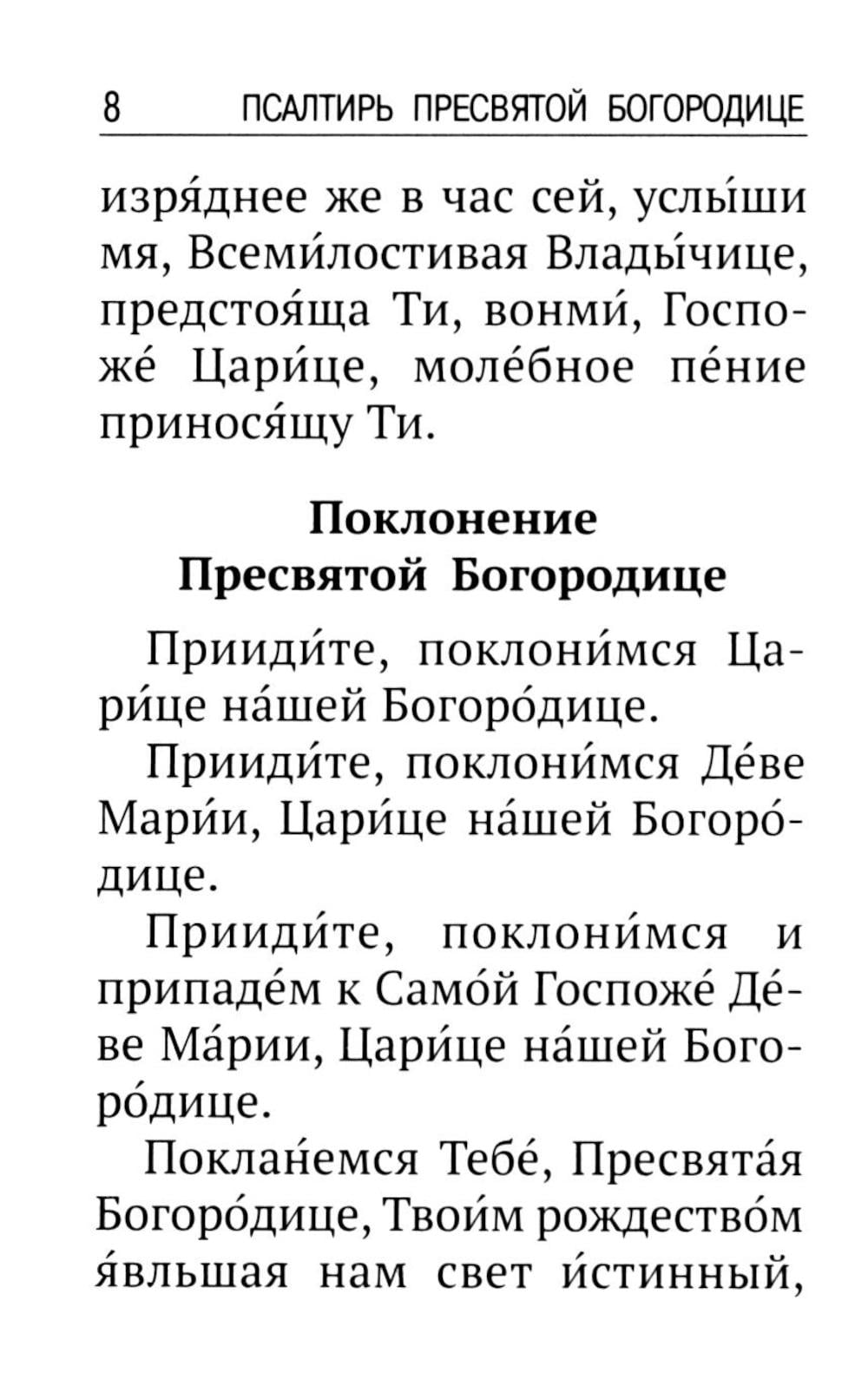 Аннотация: Псалтирь ко Пресвятой Богородице. Богородичное правило. Пяточисленные молитвы