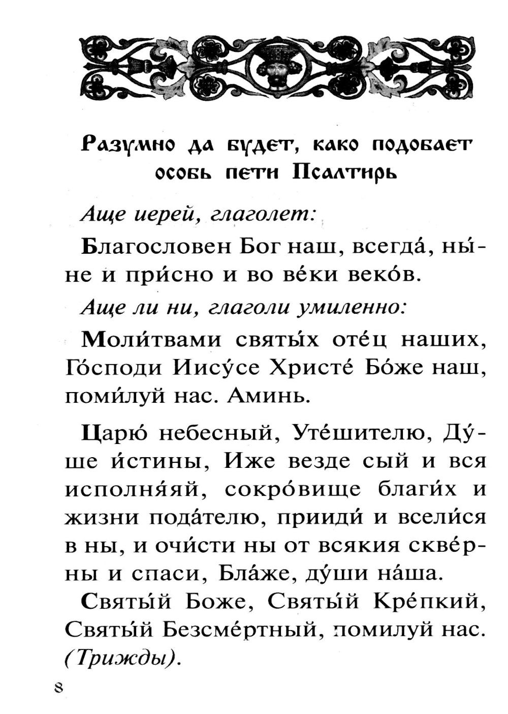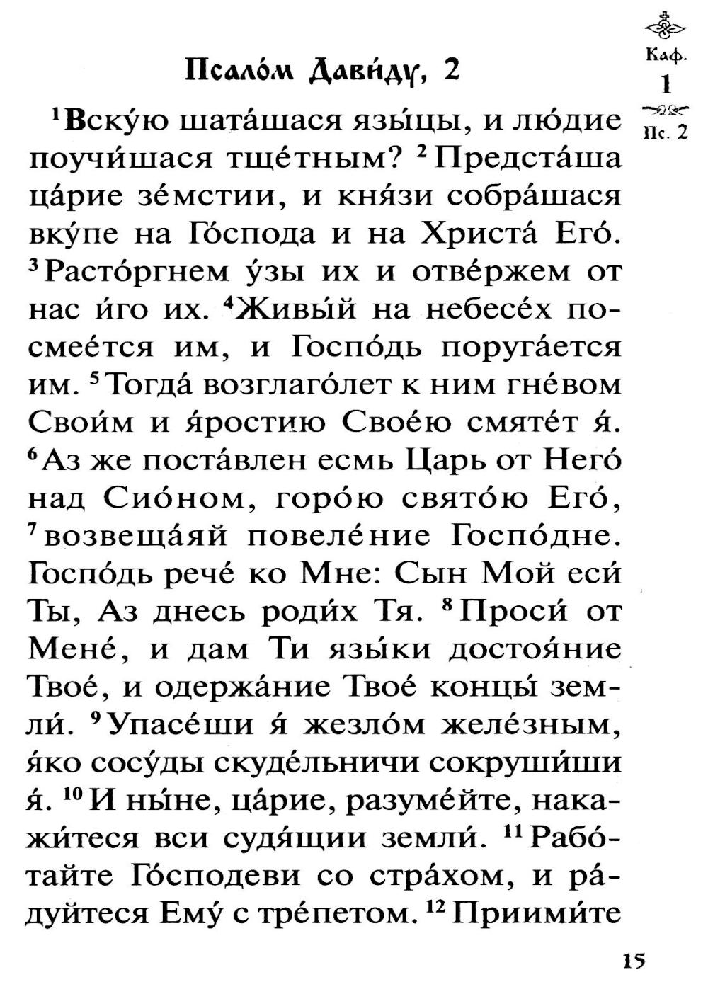 Псалтирь с указанием порядка чтения псалмов на всякую потребу