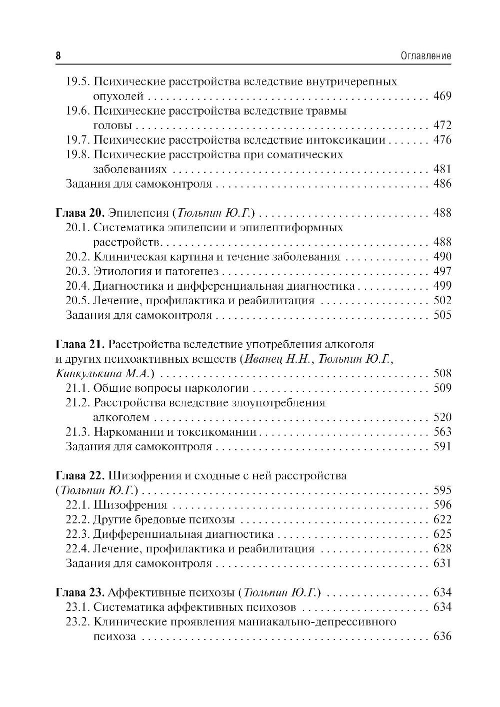 В учебнике рассмотрен широкий круг проблем психиатрии. Подробно освещены вопросы общей психопатологии, дана характеристика часто встречающихся симптомов и синдромов психических расстройств. Представлены принципы классификации, диагностики, лечения, а также сведения об этиологии и распространенности основных психических заболеваний и болезней зависимости. Обсуждены теоретические вопросы, касающиеся происхождения и законов развития психических нарушений, а также принципы организации психиатрической помощи и проведения экспертизы. В специальном разделе учебника изложены вопросы медицинской психологии, затрагивающие сложные психологические ситуации, возникающие в работе врача любой специальности. Предназначен студентам медицинских вузов.| Издательство | ГЭОТАР-Медиа |
