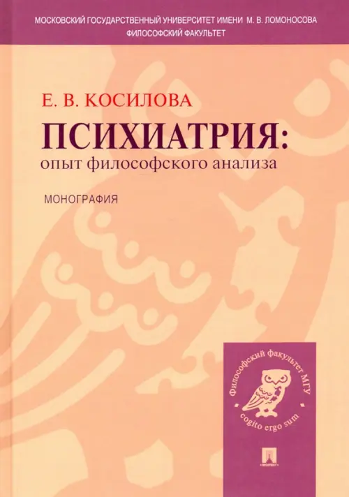 Монография Е. В. Косиловой "Психиатрия: опыт философского анализа" посвящена философскому взгляду на психиатрию как на науку и на психическую болезнь как на объект этой науки и как на феномен, имеющий самостоятельную ценность. Книга состоит из двух частей, В первой части психиатрия исследуется с точки зрения философии науки, Во второй части подробно разобраны две нозологические единицы психиатрии: шизофрения и ранний детский аутизм. Дополнительно рассматривается также одна из пограничных нозологических форм: психопатия Хаэра.