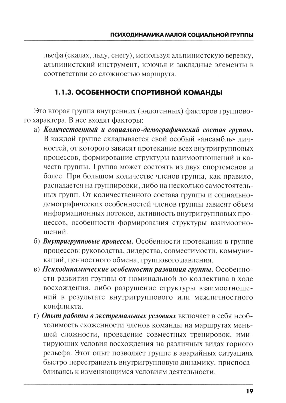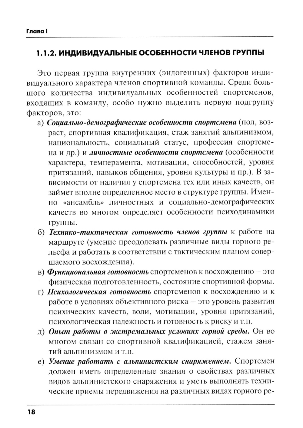 В монографии рассматриваются основные психологические принципы функционирования малой группы, действующей в экстремальных условиях горной среды, и механизмы обеспечивающие ее надежность и успешность. В основу работы легли материалы многолетни* исследований высококвалифицированных команд альпинистов и практический опыт работы автора с различными группами. Монография рассчитана на спортсменов и тренеров, специализирующихся в горных видах спорта (альпинизме, скалолазании, ледо-лазании, спелеологии, фрирайде, ски-альпинизме, бейсклаймбинге, горном туризме), а также специалистов силовых структур и подразделений МЧС.| Издательство | ТВТ Дивизион |