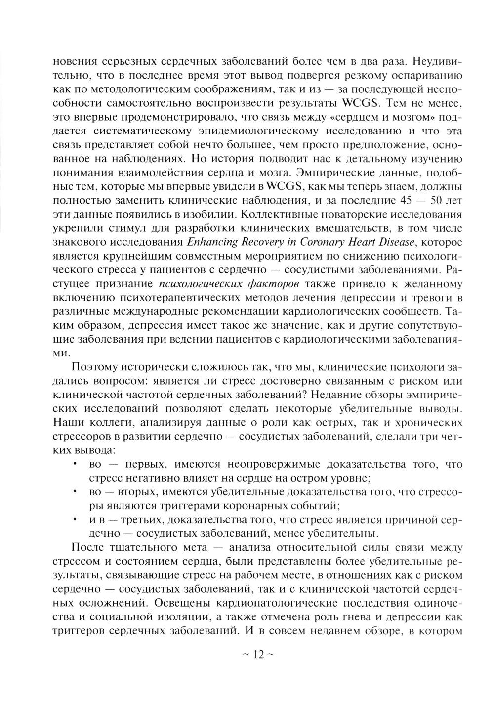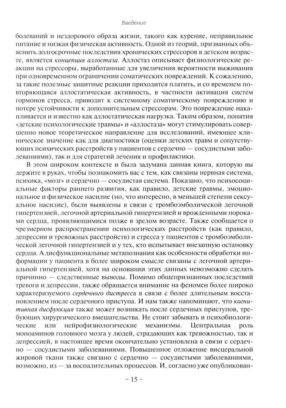 Вы держите в руках вводное практическое руководство по быстро развивающемуся направлению, объясняющее взаимосвязь мозга, психики и сердечно-сосудистой системы - психокардиологии, поведенческой кардиологии или кардиологической психологии. Руководство освещает и пробует решить широкий спектр вопросов: Что такое «кардионевроз» или синдром «солдатского сердца»? Как взаимосвязаны сердечно-сосудистые и психические расстройства? Что такое ось «нервная система-психика-сердечно-сосудистая система»? Гнев, социальная изоляция, нейротизм и сердечно-сосудистые расстройства? Что такое стресс-связанные сердечные аритмии и кардиалгии? Личностные особенности типа «А», «D» и сердечно-сосудистые расстройства? Что такое гипертоническая болезнь белого халата, тонометр фобия или страх измерения давления? Стресс, эмоции и уровень холестерина? Книга предназначена всем кто интересуется вопросами психического здоровья, в том числе клиническим психологам, психиатрам, психотерапевтам, врачам-кардиологам, а также пациентам с сердечно-сосудистыми расстройствами и их родственникам.| Издательство | Галактика |
