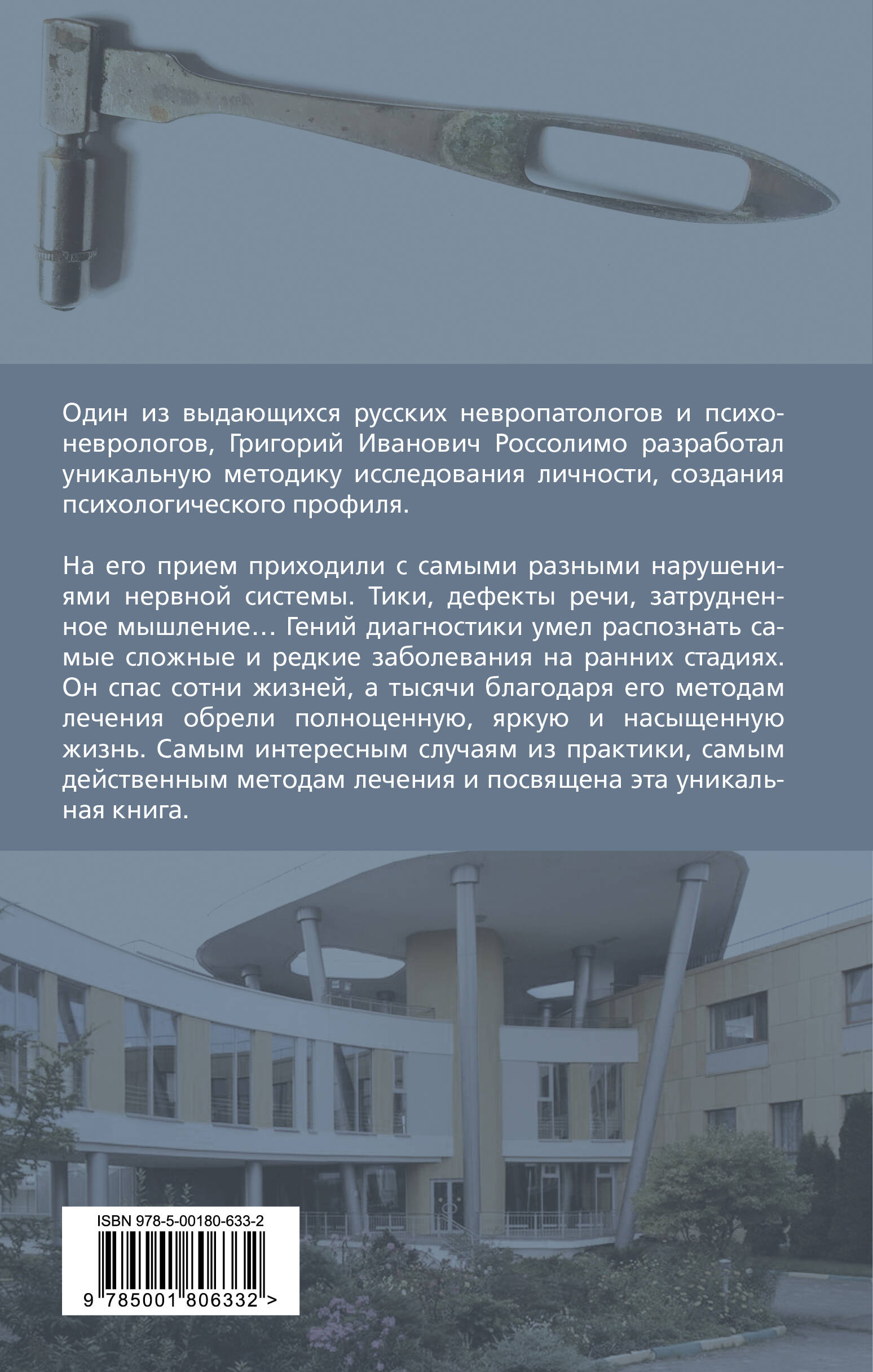 Один из выдающихся русских невропатологов и психоневрологов, Григорий Иванович Россолимо, разработал уникальную методику исследования личности, создания психологического профиля. На его прием приходили с самыми разными нарушениями нервной системы. Тики, дефекты речи, затрудненное мышление… Гений диагностики умел распознать самые сложные и редкие заболевания на ранних стадиях. Он спас сотни жизней, а тысячи, благодаря его методам лечения, обрели полноценную, яркую и насыщенную жизнь. Самым интересным случаям из практики, самым действенным методам лечения и посвящена эта книга.| Издательство | Родина Издательство ООО |