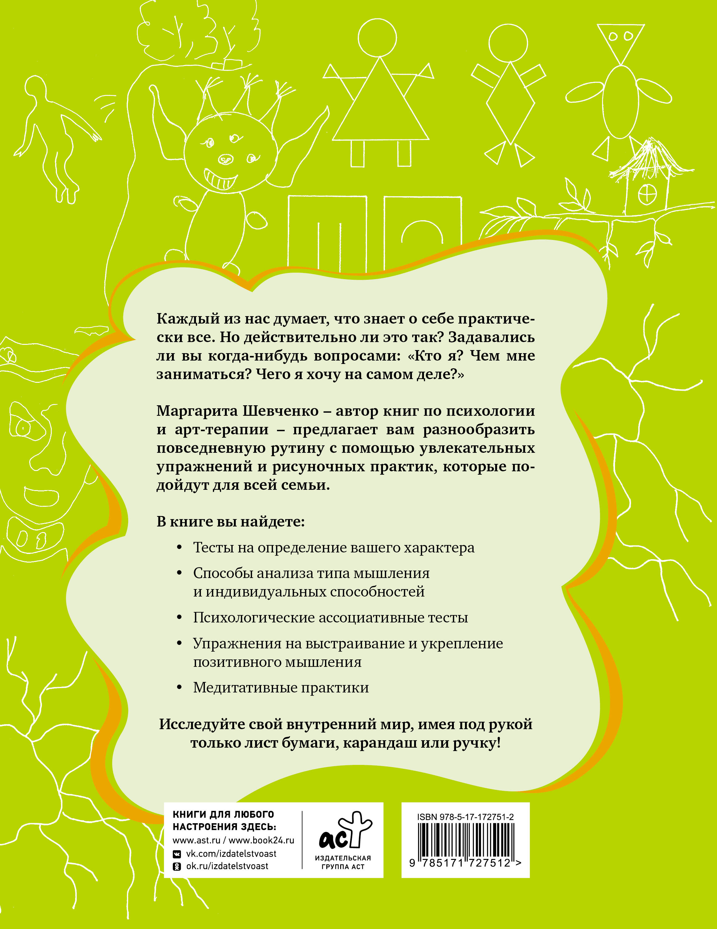Каждый из нас думает, что знает о себе практически все. Но действительно ли это так? Задавались ли вы когда-нибудь вопросами: "Кто я? Чем мне заниматься? Чего я хочу на самом деле?" Маргарита Шевченко - автор книг по психологии и арт-терапии предлагает вам разнообразить повседневную рутину с помощью увлекательных упражнений и рисуночных практик, которые подойдут для всей семьи. В книге вы найдете: • Тесты на определение вашего характера; • Способы анализа типа мышления и индивидуальных способностей; • Психологические ассоциативные тесты; • Упражнения на выстраивание и укрепление позитивного мышления; • Медитативные практики. Исследуйте свой внутренний мир, имея под рукой только лист бумаги, карандаш или ручку!| Издательство | Издательство "АСТ" |