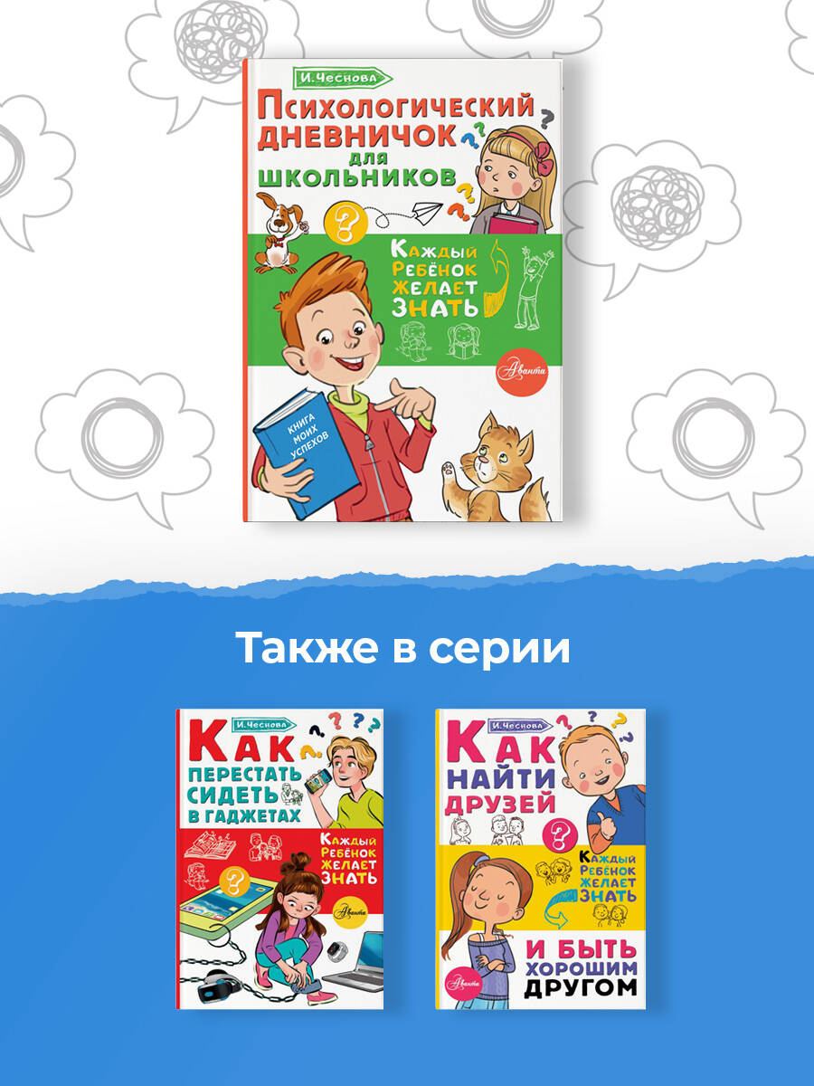 Психологический дневничок поможет школьникам "начать новую жизнь", стать умнее, совершеннее, почувствовать себя увереннее. разобраться со своими проблемами в школе и дома, с друзьями и родителями, В дневничке достаточно много текста, чтобы почитать и подумать, а потом заполнить пустые строки своими мыслями, эмоциями, анализом ситуаций и перспективами дальнейшего развития. Веселые рисунки художника Муси Кудрявцевой и орнаменты, которые юные читатели могут зарисовать, создадут особую атмосферу и помогут эффективно протестировать себя.| Издательство | ИЗДАТЕЛЬСТВО "АСТ" |
