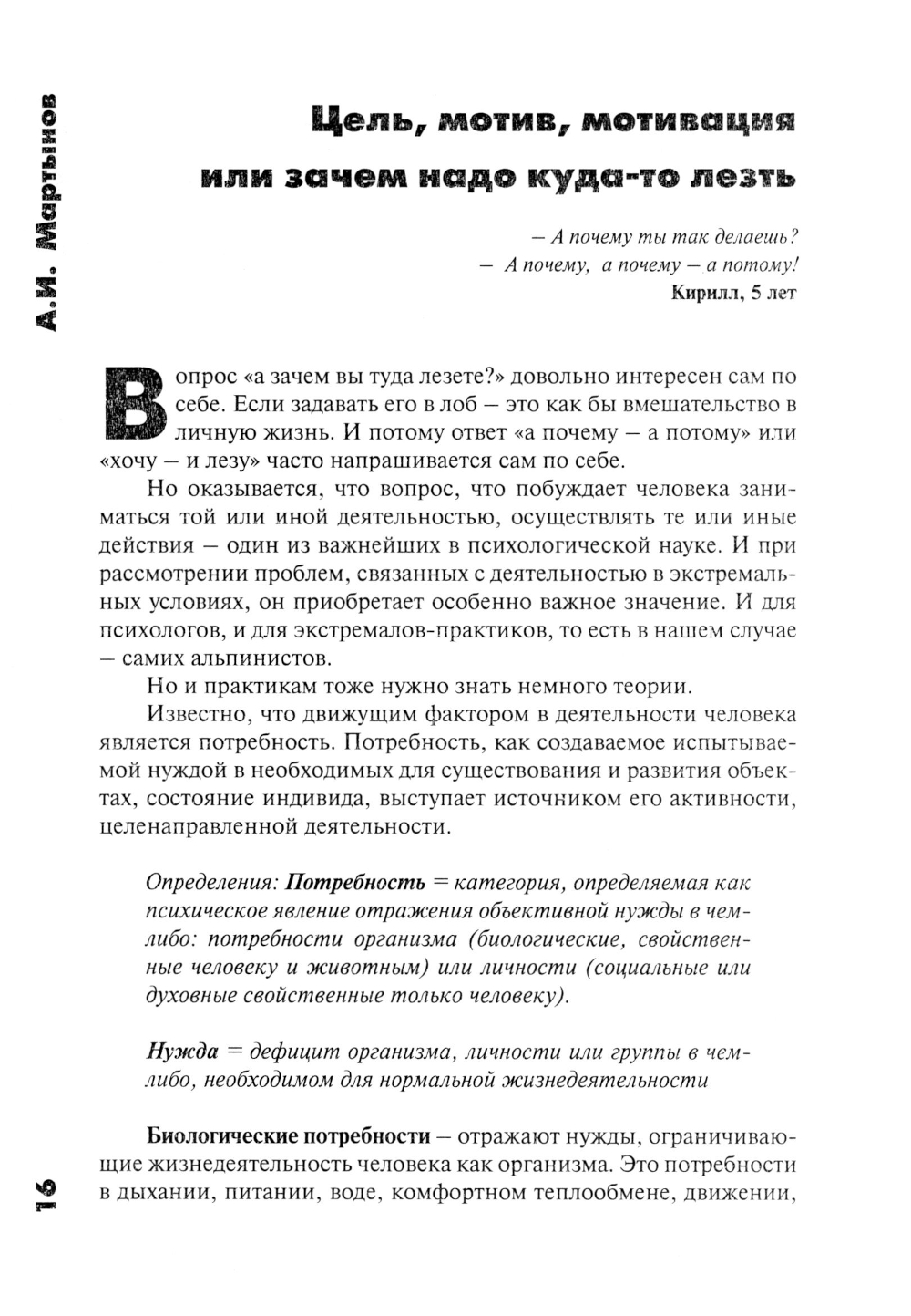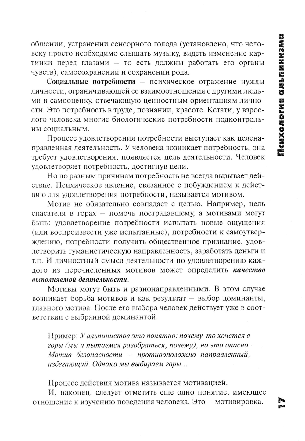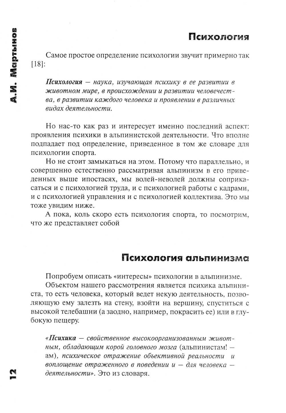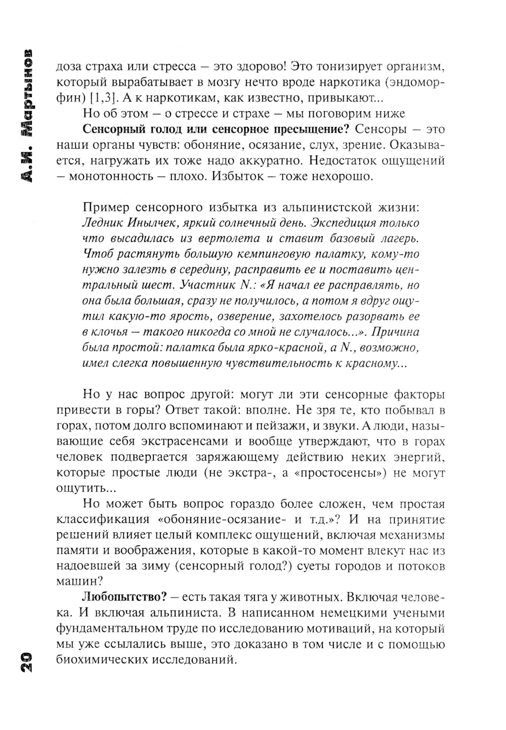 Книга посвящена вопросам применения психологии для анализа и оптимизации деятельности человека в горах. Приведено большое количество реальных примеров различных психологических ситуаций, даны рекомендации по применению в практике альпинистских групп приемов взаимного и аутогенного психологического воздействия. Для альпинистов, горных туристов, спелеологов, тренеров по этим видам спорта, спасателей, и всех, интересующихся вопросами психологии экстремальной деятельности.| Издательство | ТВТ Дивизион |