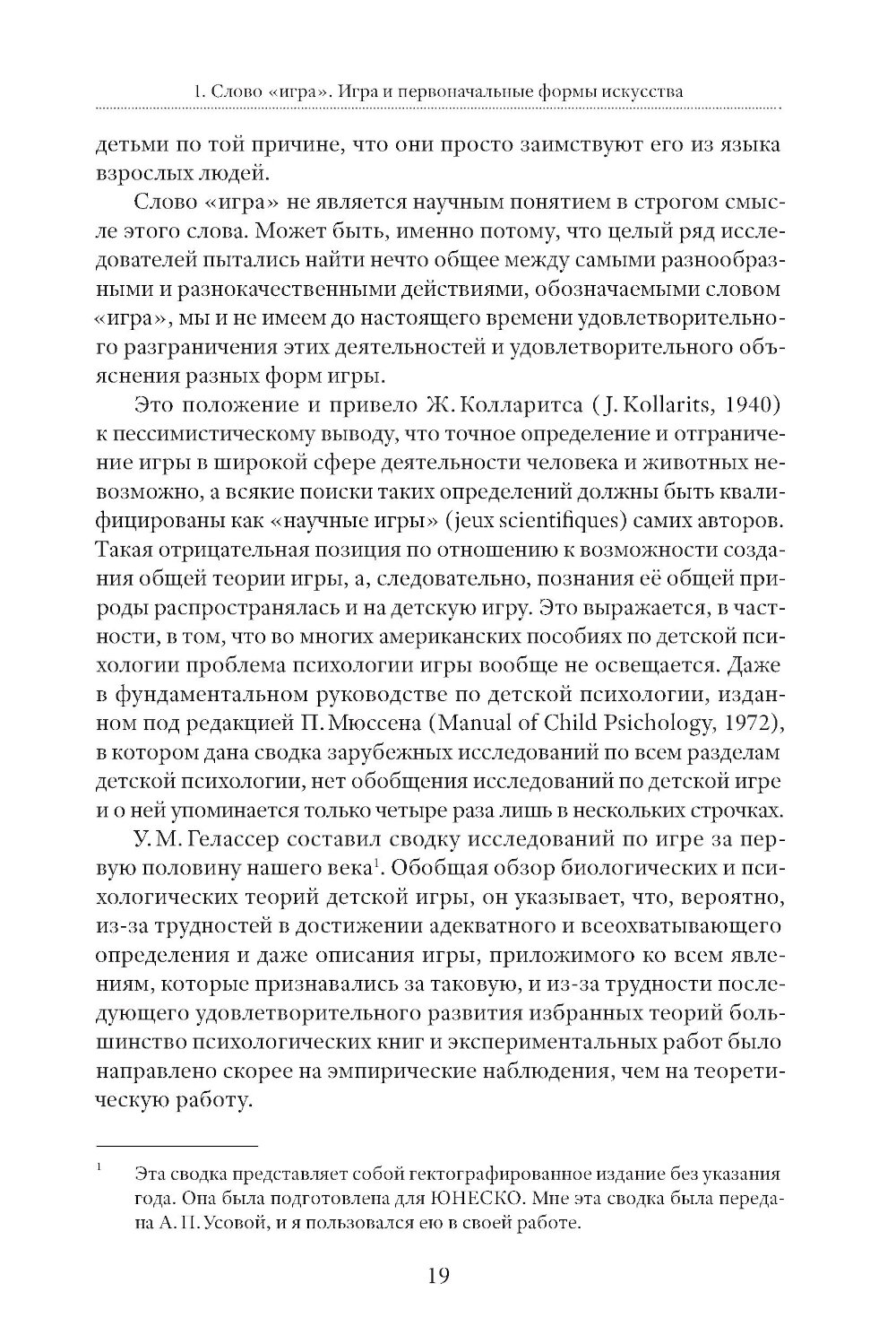 Почему игры так важны для формирования личности ребёнка? Что возникло раньше - игра или труд? Как индивидуальные особенности развития детей влияют на игровую деятельность и какую роль ей отводят отечественные и зарубежные психологи? В основу книги выдающегося отечественного психолога Даниила Эльконина легли теоретические и экспериментальные исследования А. Леонтьева, Л. Запорожца и П. Гальперина. Теория детской игры представлена им в русле культурно-исторической концепции Льва Выготского, где главной мотивацией ребёнка становится подражание взрослым и принятие на себя их роли. Автор выделяет и анализирует 4 периода развития игровой деятельности дошкольника, каждый из которых сопровождается результатами практических наблюдений. Книга рекомендована студентам, аспирантам и специалистам в области психологии, а также воспитателям и родителям детей дошкольного возраста.| Издательство | Советские учебники |